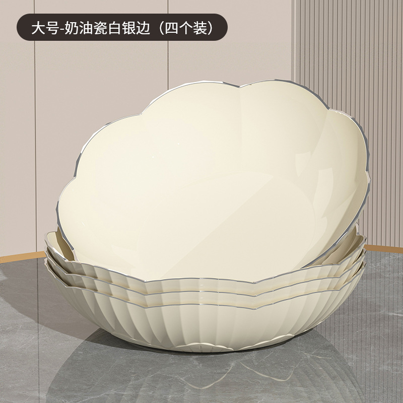 • [실버 가장자리 크림 도자기 화이트] (대형-4 팩)
