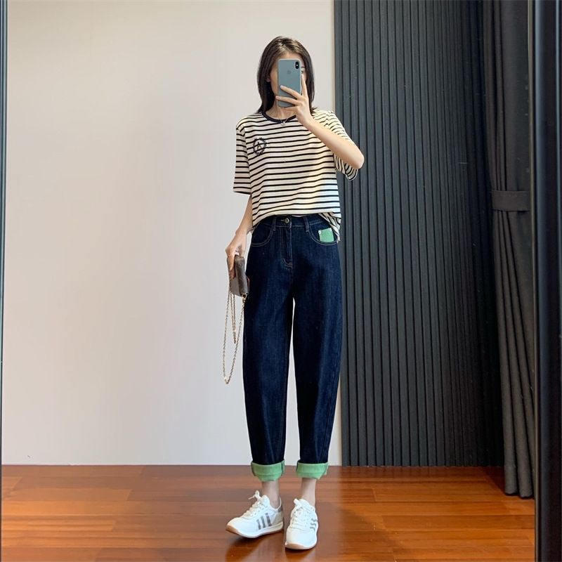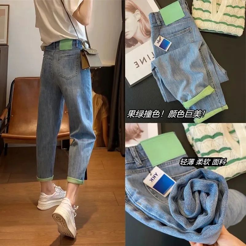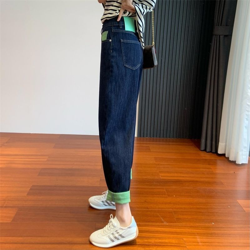 배형 체형에 어울리는 과일 그린 배색 얇은 하이웨이스트 여성용 루즈핏 슬리밍 하렘 레그 팬츠 트렌디한 와이드 레그 팬츠