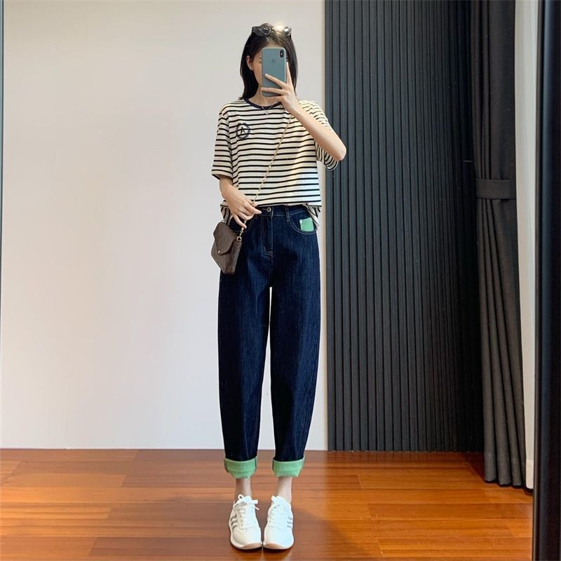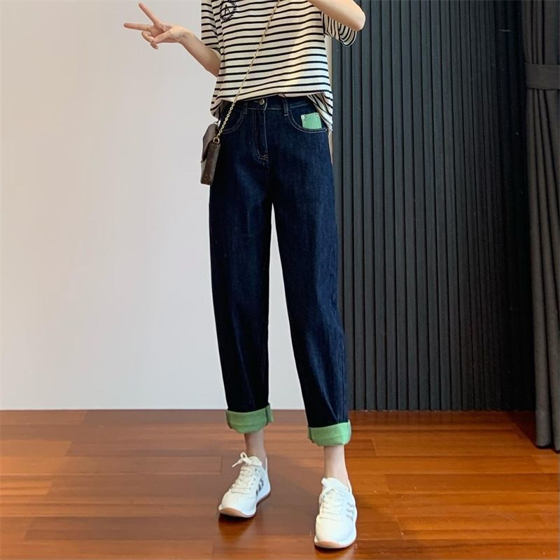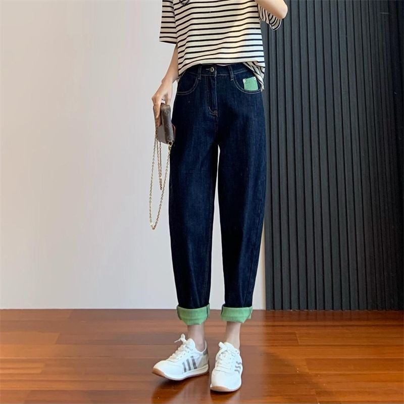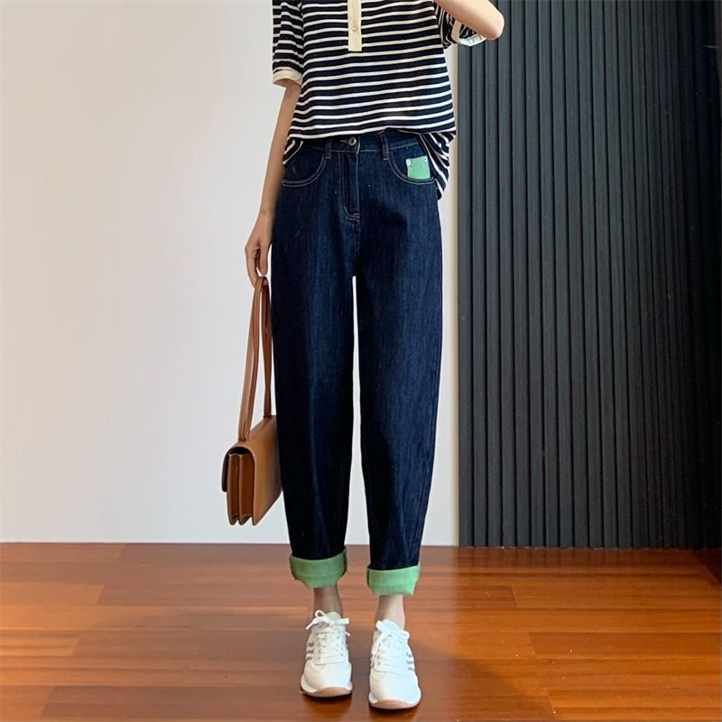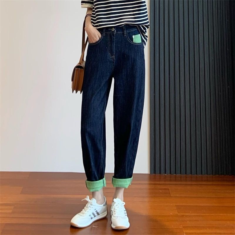 배형 체형에 어울리는 과일 그린 배색 얇은 하이웨이스트 여성용 루즈핏 슬리밍 하렘 레그 팬츠 트렌디한 와이드 레그 팬츠스토어 가기