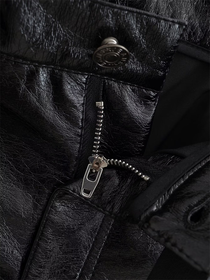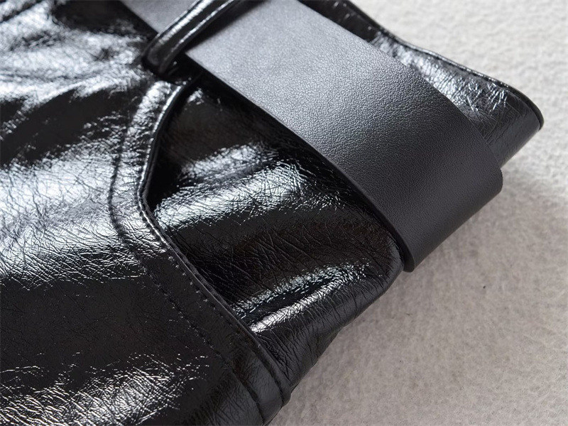아메리칸 레트로 블랙 미러 섹시 스파이스 소녀 가죽 바지 여성의 가을과 겨울 하이 웨이스트 슬리밍 에나멜 가죽 반바지 모든 매치 부츠 바지
