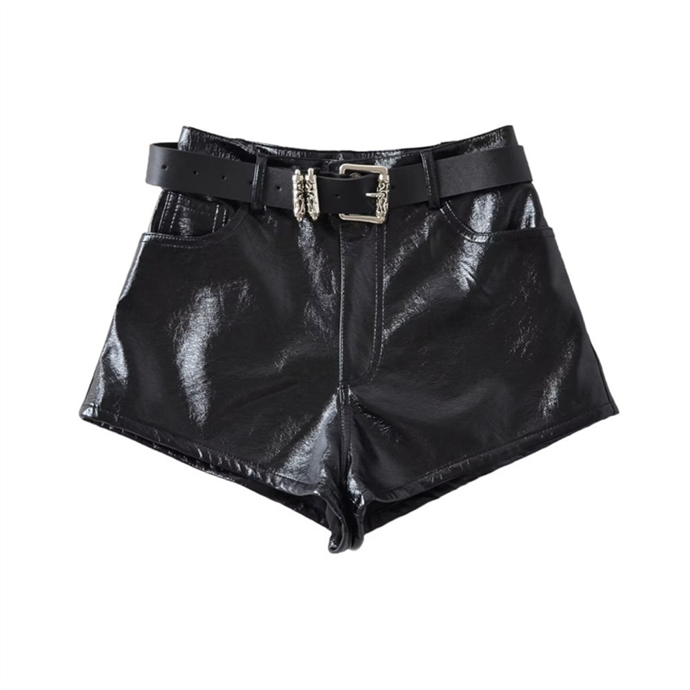 아메리칸 레트로 블랙 미러 섹시 스파이스 소녀 가죽 바지 여성의 가을과 겨울 하이 웨이스트 슬리밍 에나멜 가죽 반바지 모든 매치 부츠 바지스토어 가기