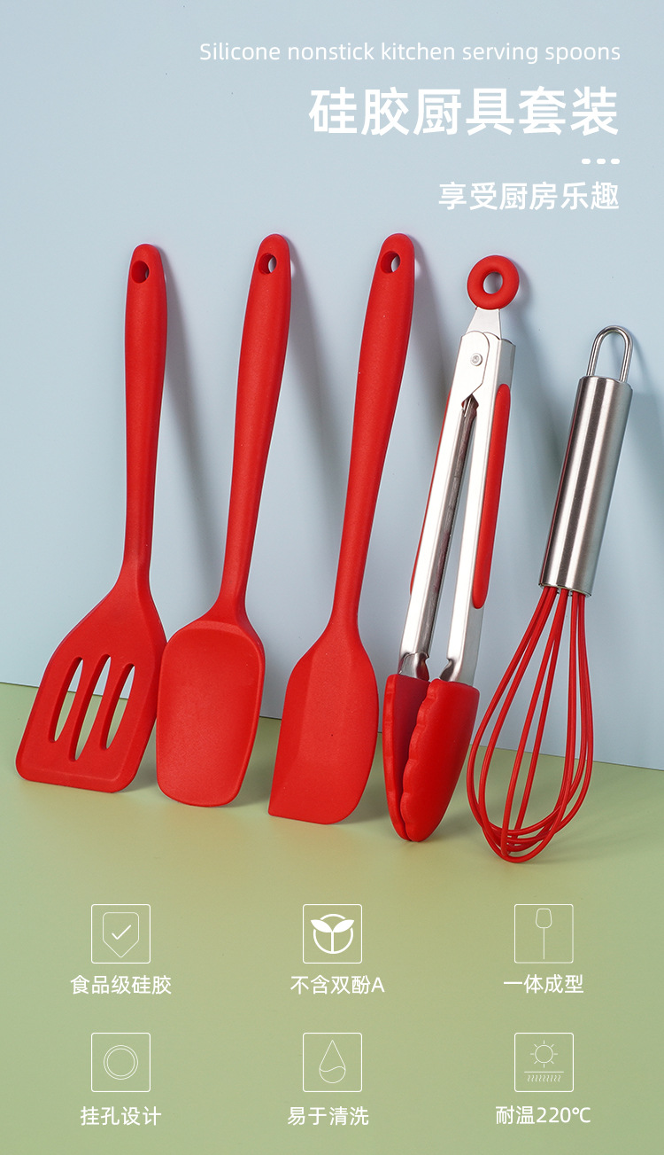 식품 등급 실리콘 요리 주방 용품 세트 고온 저항 수프 스푼 주걱 스크레이퍼 달걀 비터 세트 요리 도구