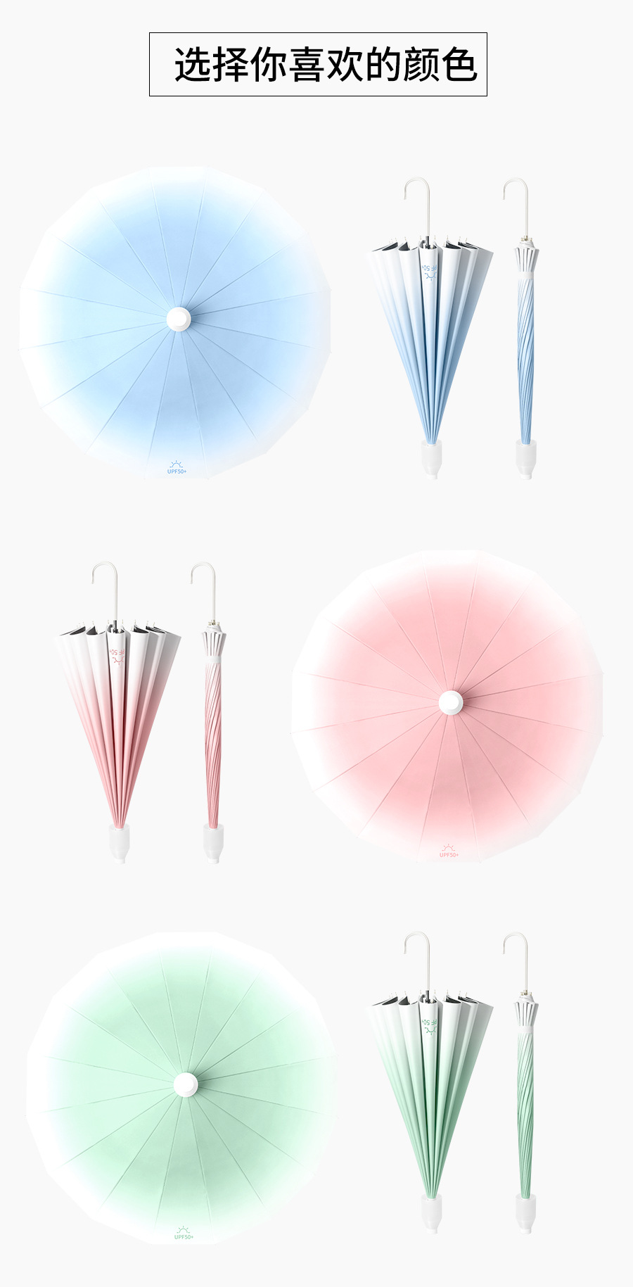 • [곡선손잡이] 16본 그라데이션 직선우산-하늘색