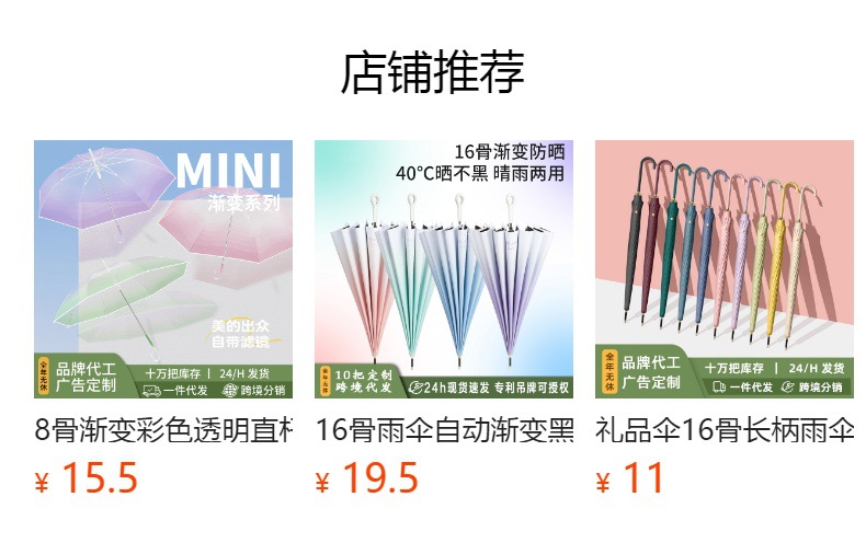 16 뼈 그라디언트 블랙 스트레이트 우산 태양 보호 UV 긴 손잡이 우산 맑고 비 이중 사용 맞춤형 광고 도매스토어 가기