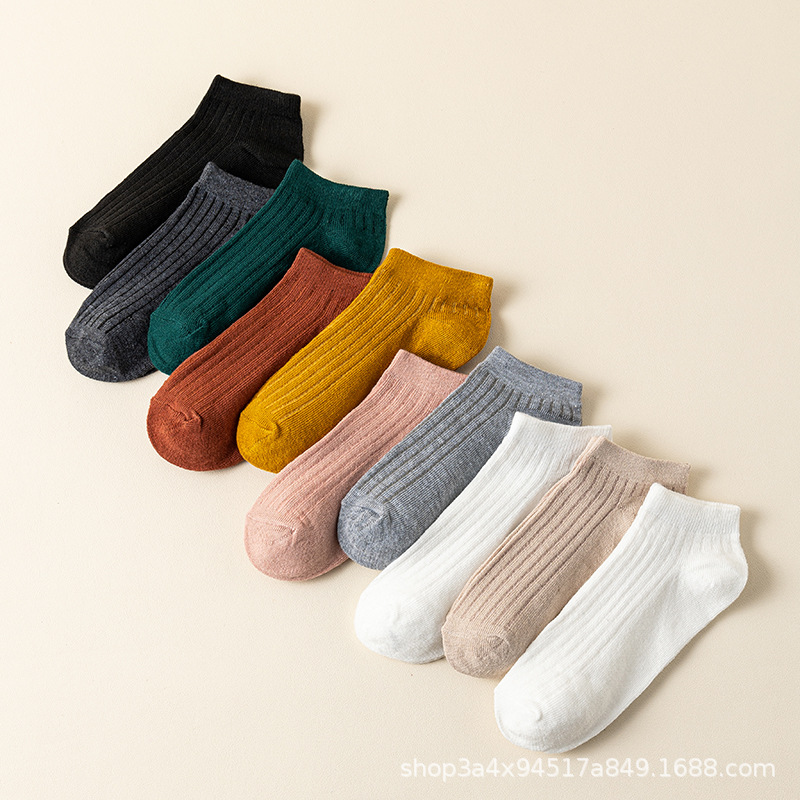 도매 새로운 봄과 가을 짧은 튜브 양말 여성용 단색 폴리 에스테르 면 얇은 일본 스포츠 레저 컬러 양말 멀티 컬러