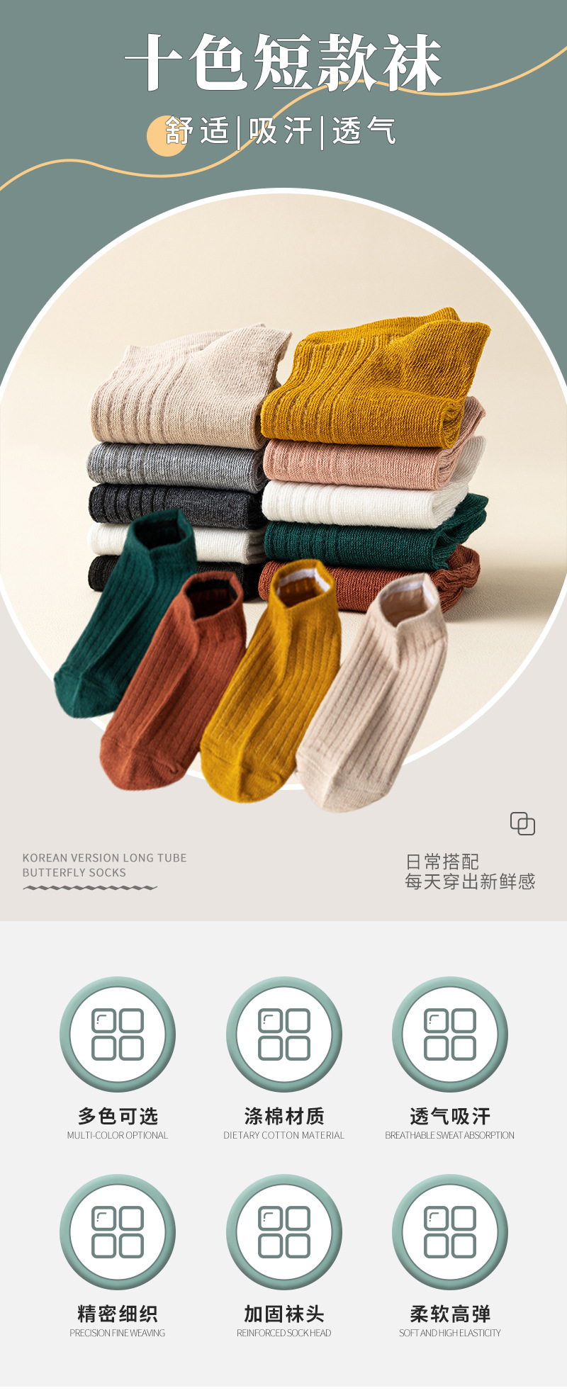 도매 새로운 봄과 가을 짧은 튜브 양말 여성용 단색 폴리 에스테르 면 얇은 일본 스포츠 레저 컬러 양말 멀티 컬러스토어 가기