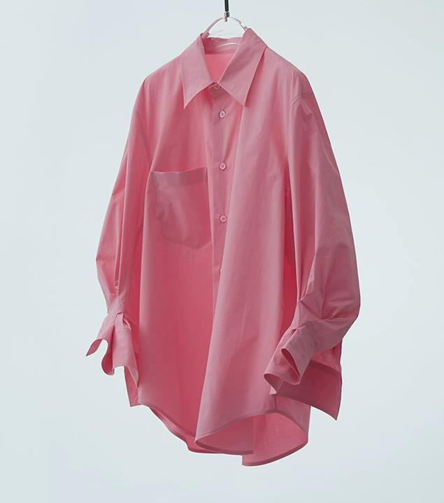 화이트 디자인 센스 긴 소매 셔츠 여자의 긴 소매 한국 스타일 23 년 가을 ol 패치 가방 느슨한 불규칙한 셔츠스토어 가기
