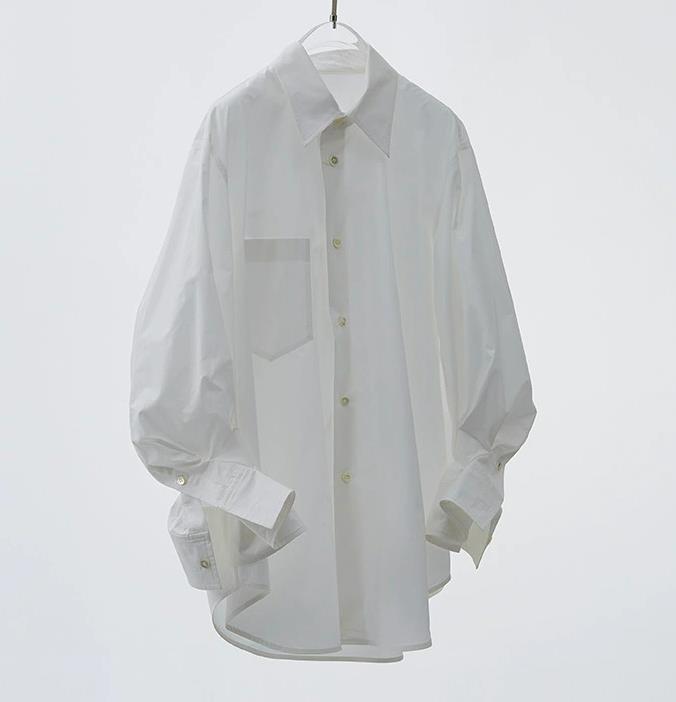 화이트 디자인 센스 긴 소매 셔츠 여자의 긴 소매 한국 스타일 23 년 가을 ol 패치 가방 느슨한 불규칙한 셔츠