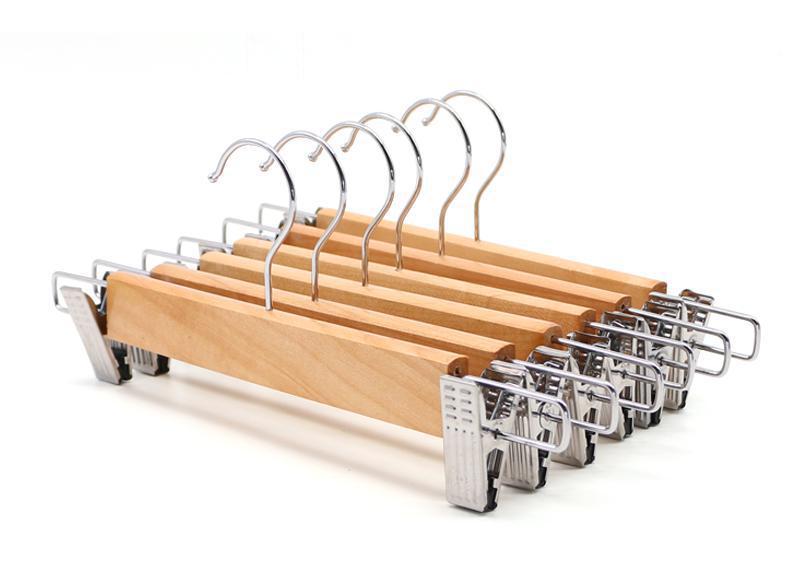 단단한 나무 성인 바지 클립 바지 랙 가정용 미끄럼 방지 옷 지원 나무 옷걸이 원활한 옷 랙 새우 아마존