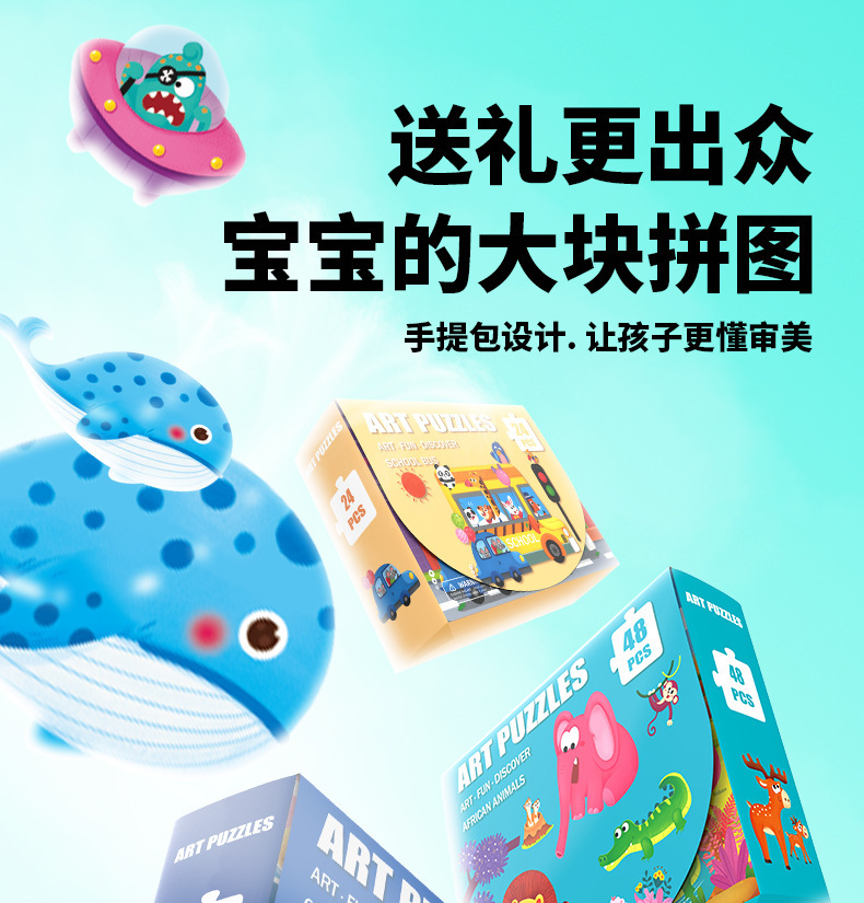 48片系列拼图彩盒尺寸:22*17*6cm 拼好后尺寸:50*34cm 重量0.4kg 装箱数54盒