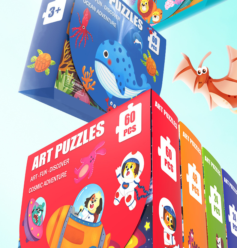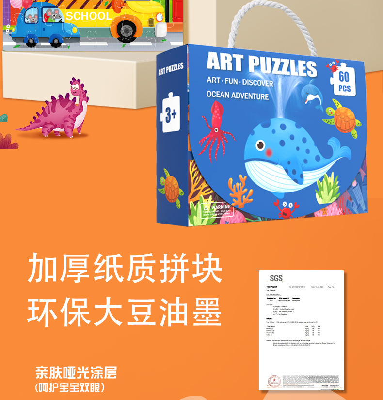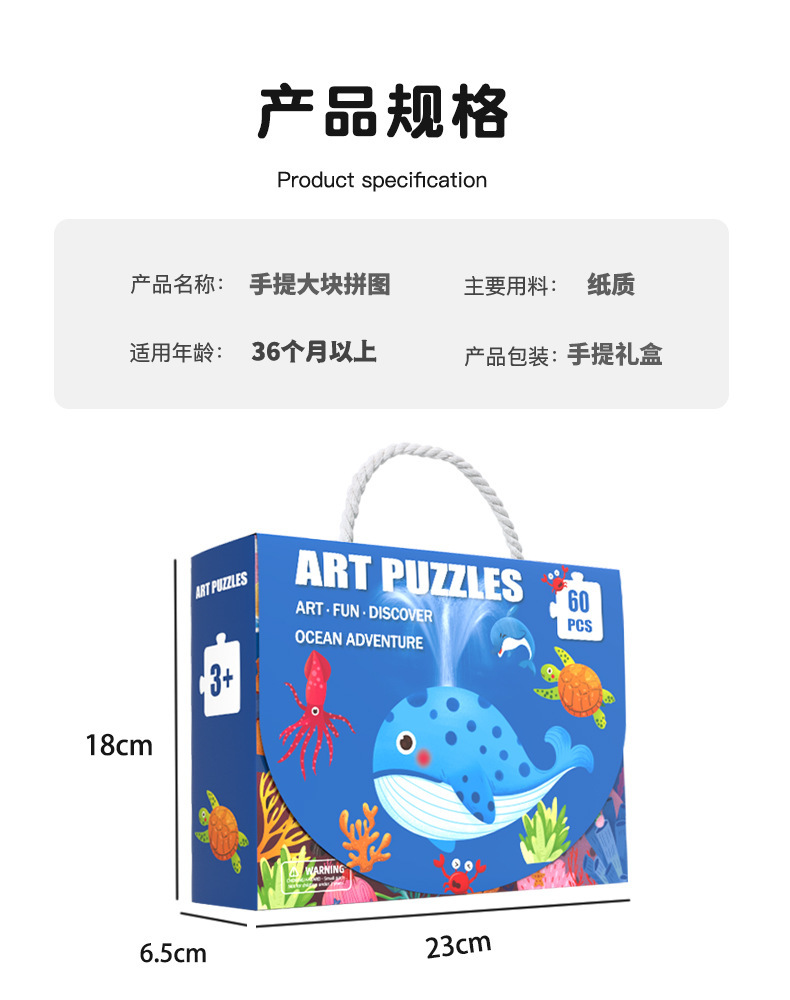 60片系列拼图彩盒尺寸:22*17*6cm 拼好后尺寸:50*34cm 重量0.4kg 装箱数54盒
