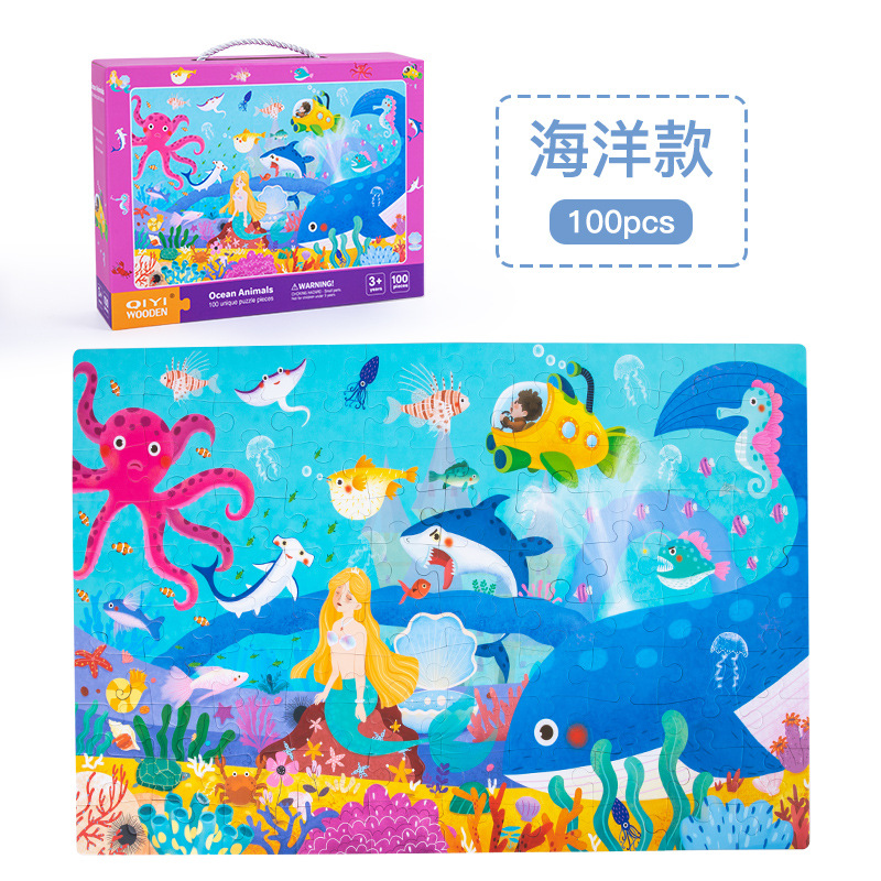100片系拼图彩盒尺寸:28*21*6cm 拼好后尺寸:50*70cm 重量0.6kg 装箱数32盒