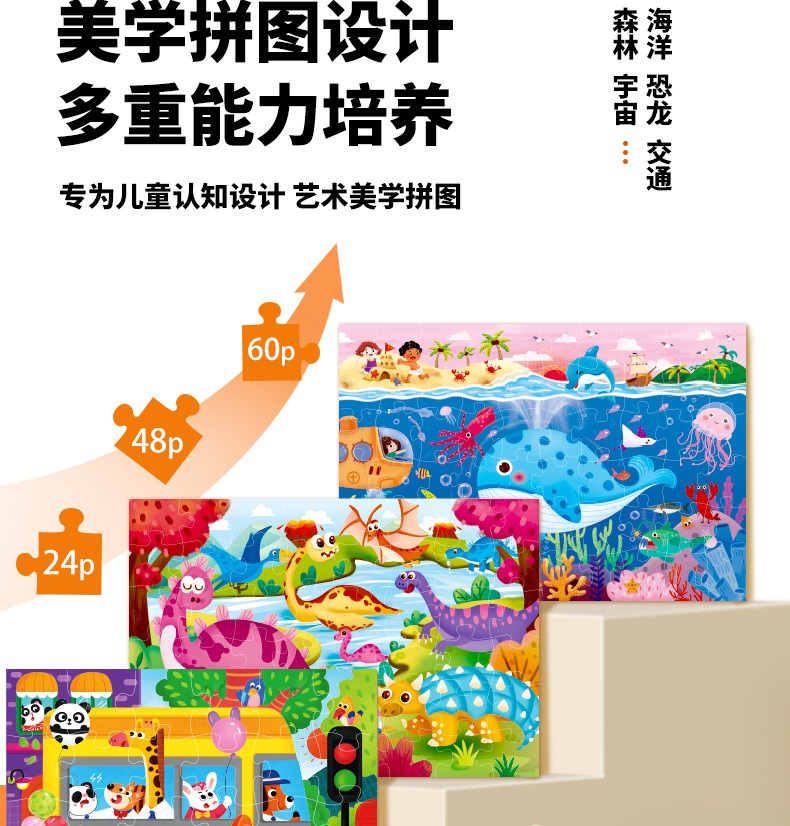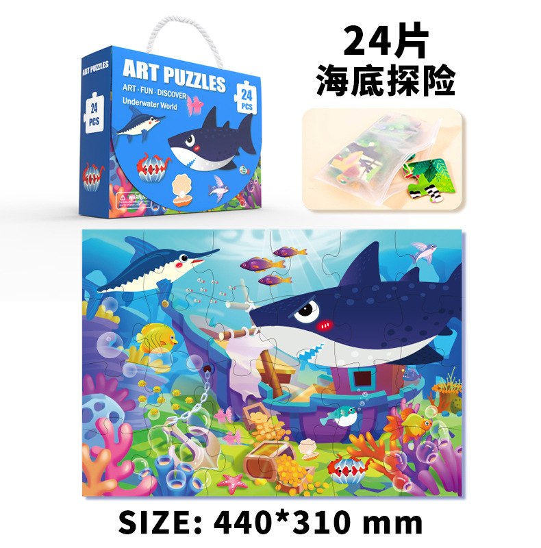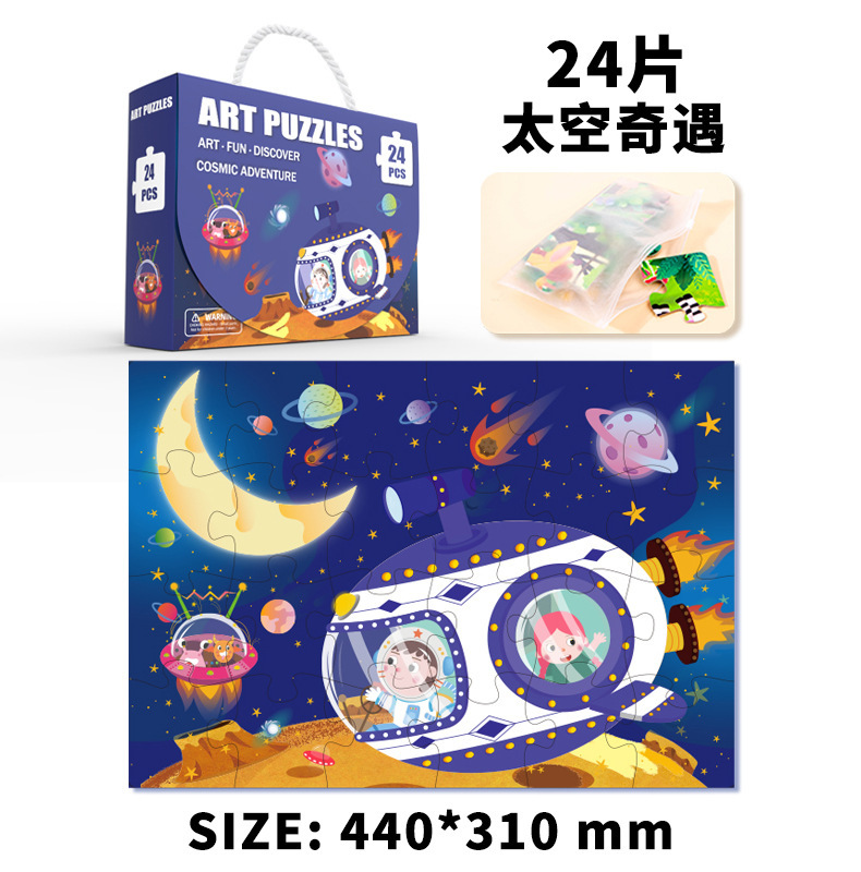 24片系列拼图彩盒尺寸:20*15*5.5cm拼好后尺寸:44*31cm 重量0.3kg 装箱数72盒