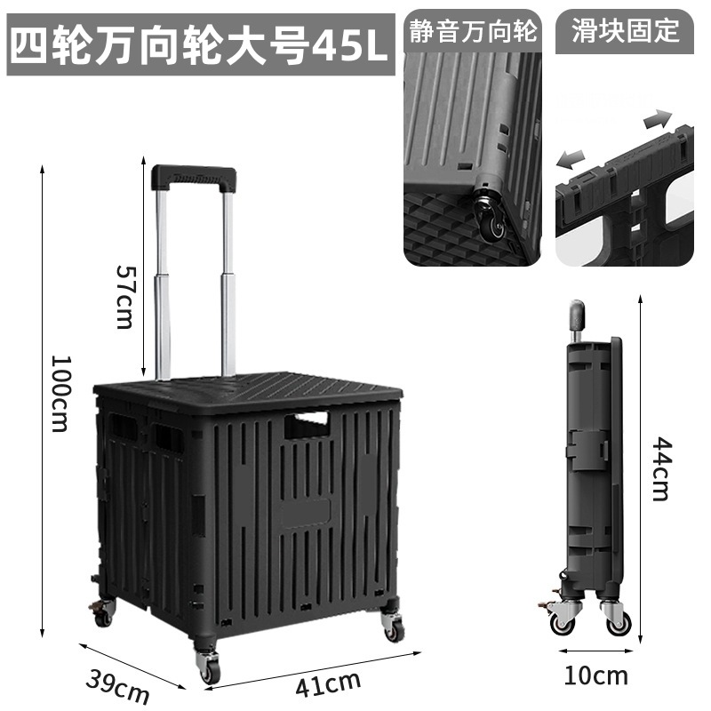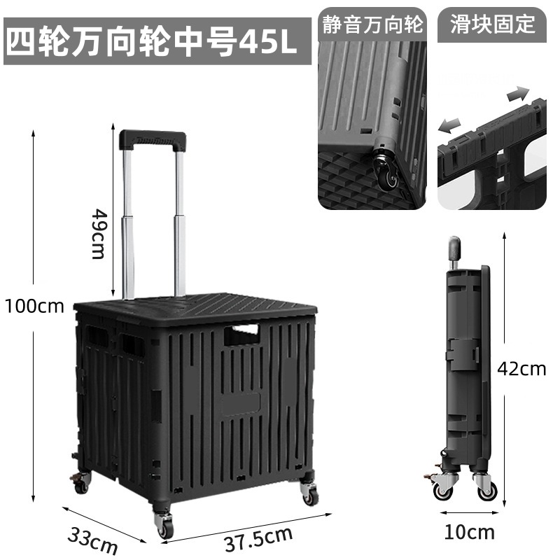• 리스 블랙 45L 중형 4 륜 유니버설 휠 브레이크 가능