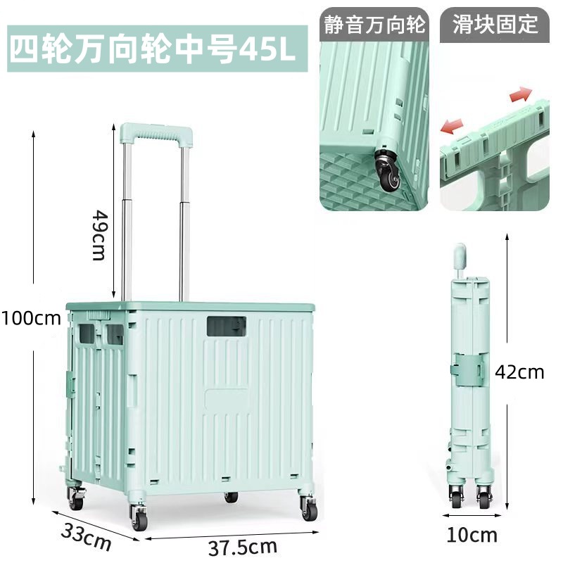 • 말차 그린 45L 중간 4 륜 유니버설 휠 브레이크 가능