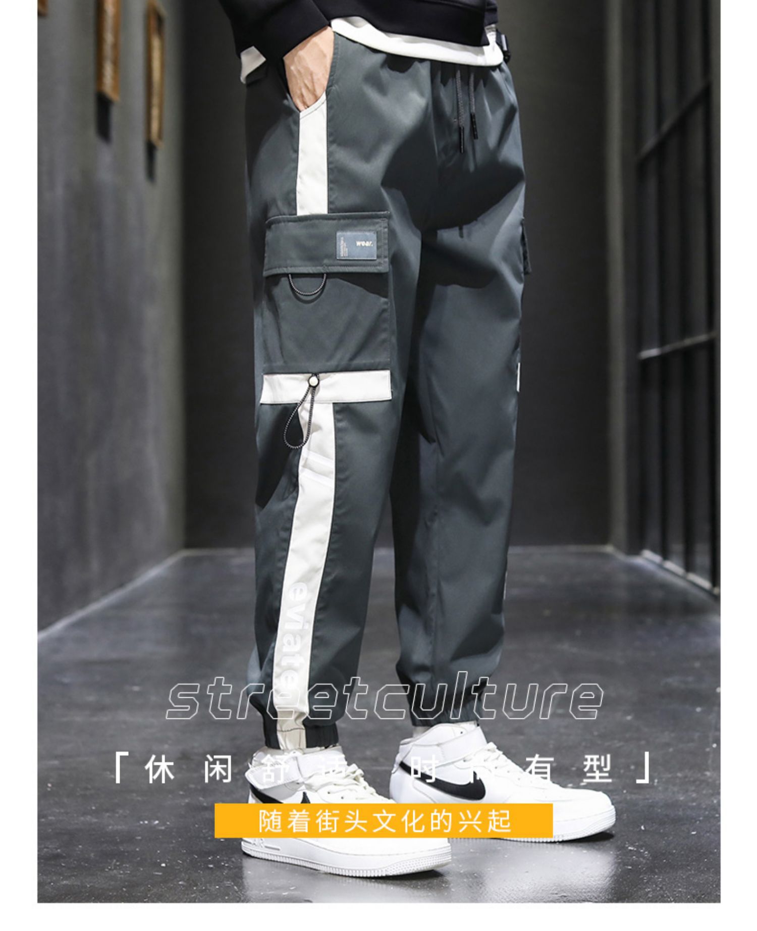 작업 바지 남자의 봄과 가을 2023 새로운 지방 타이드 브랜드 크로스 보더 발가락 스포츠 플러스 사이즈 느슨한 캐주얼 바지 남성 바지