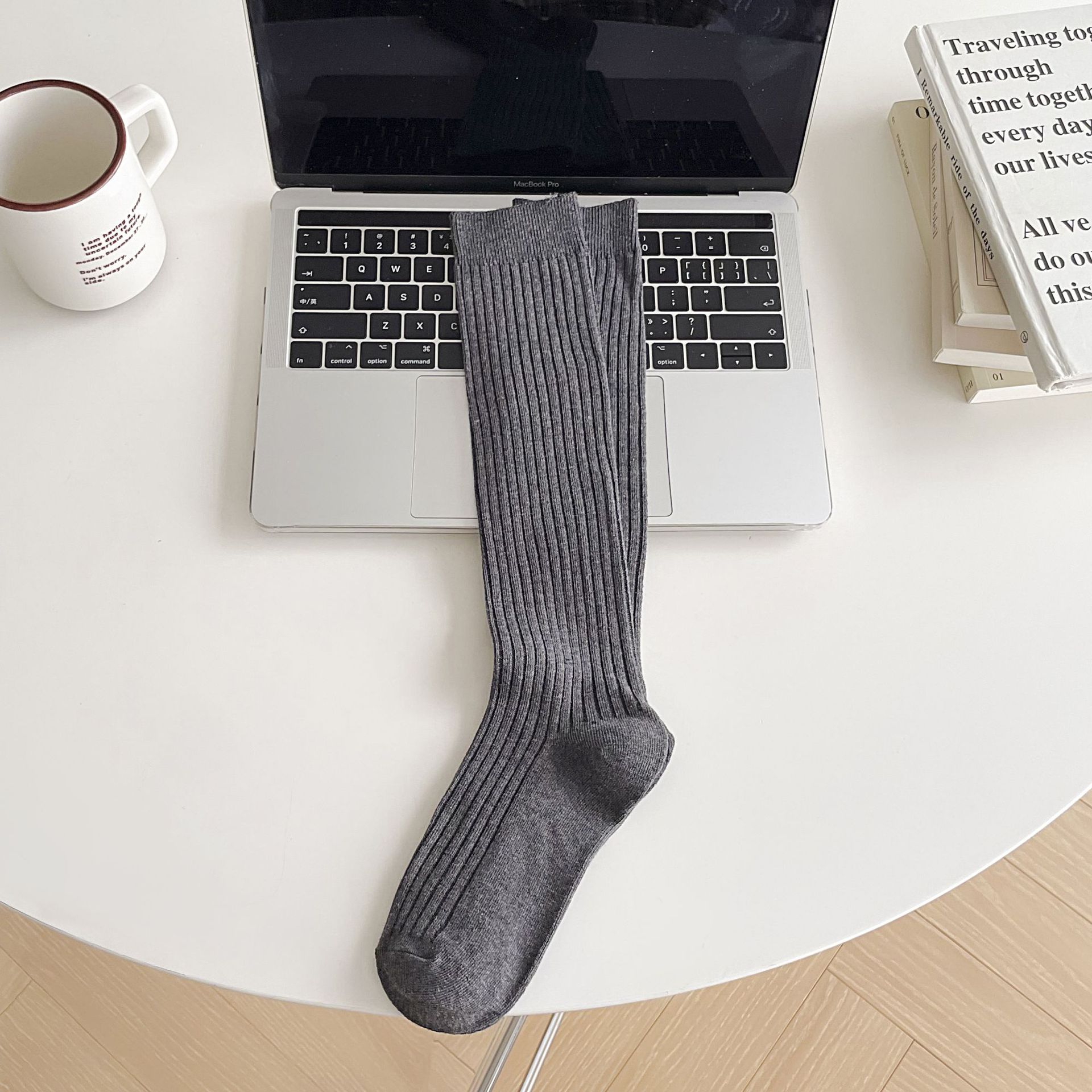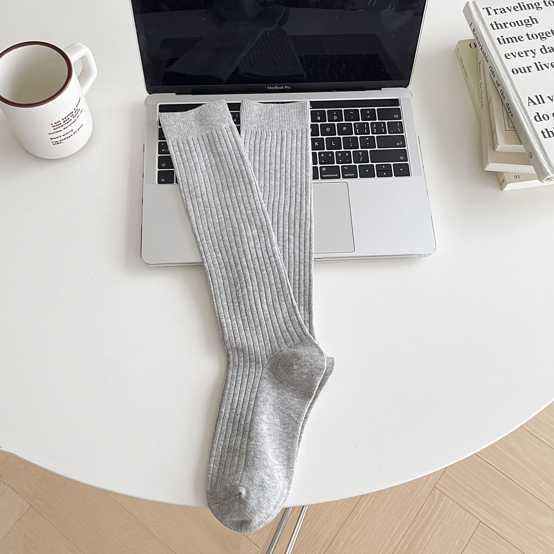 Miumiu 바람 단색 보기 좋은 봄 가을 멀티 사이즈 긴 튜브 단색 양말 흑백 회색 무릎 양말 어린이스토어 가기