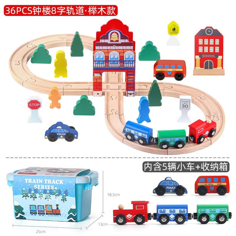 국경 간 어린이 나무 트랙 기차 세트 DIY 토마스 창조적 인 매칭 장면 교육 데스크탑 장난감스토어 가기