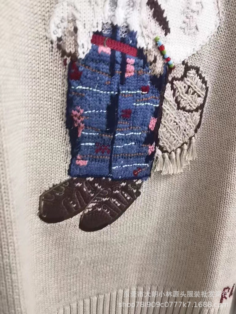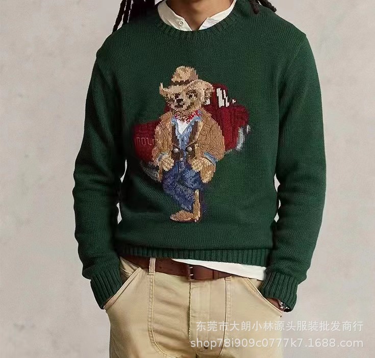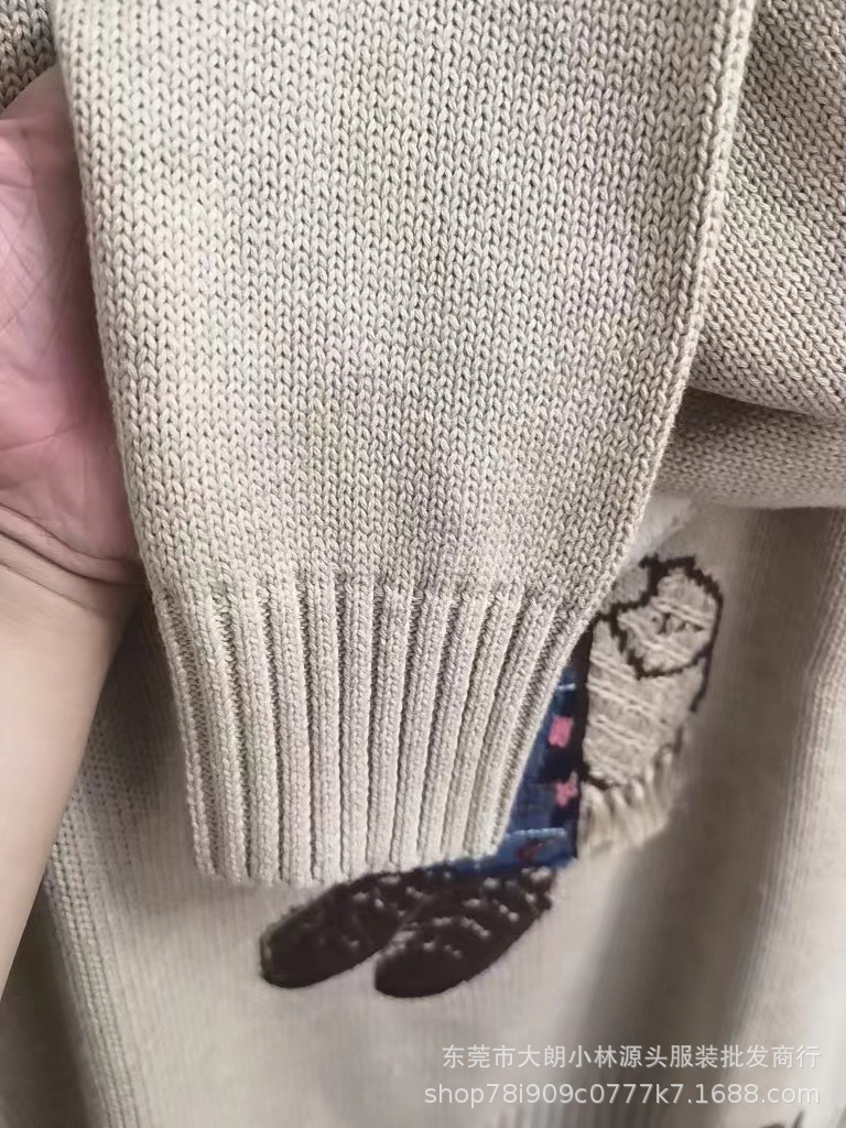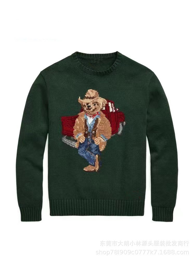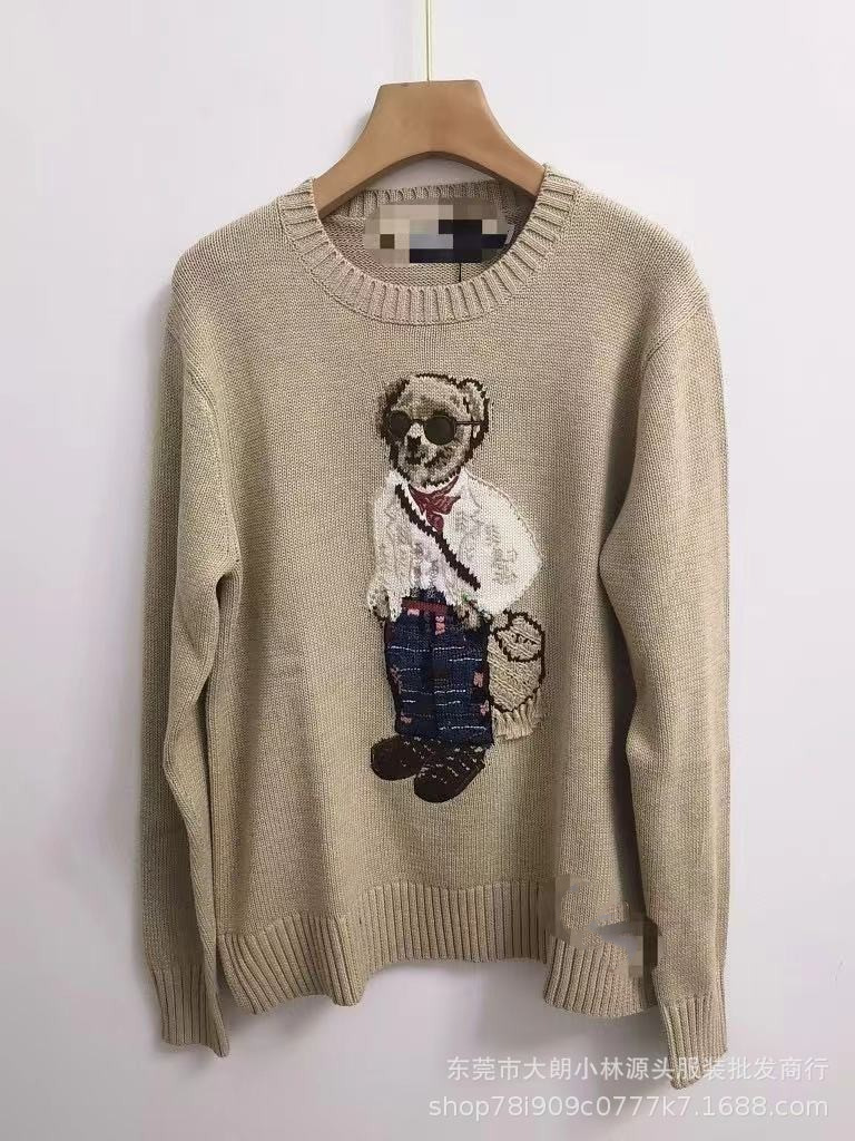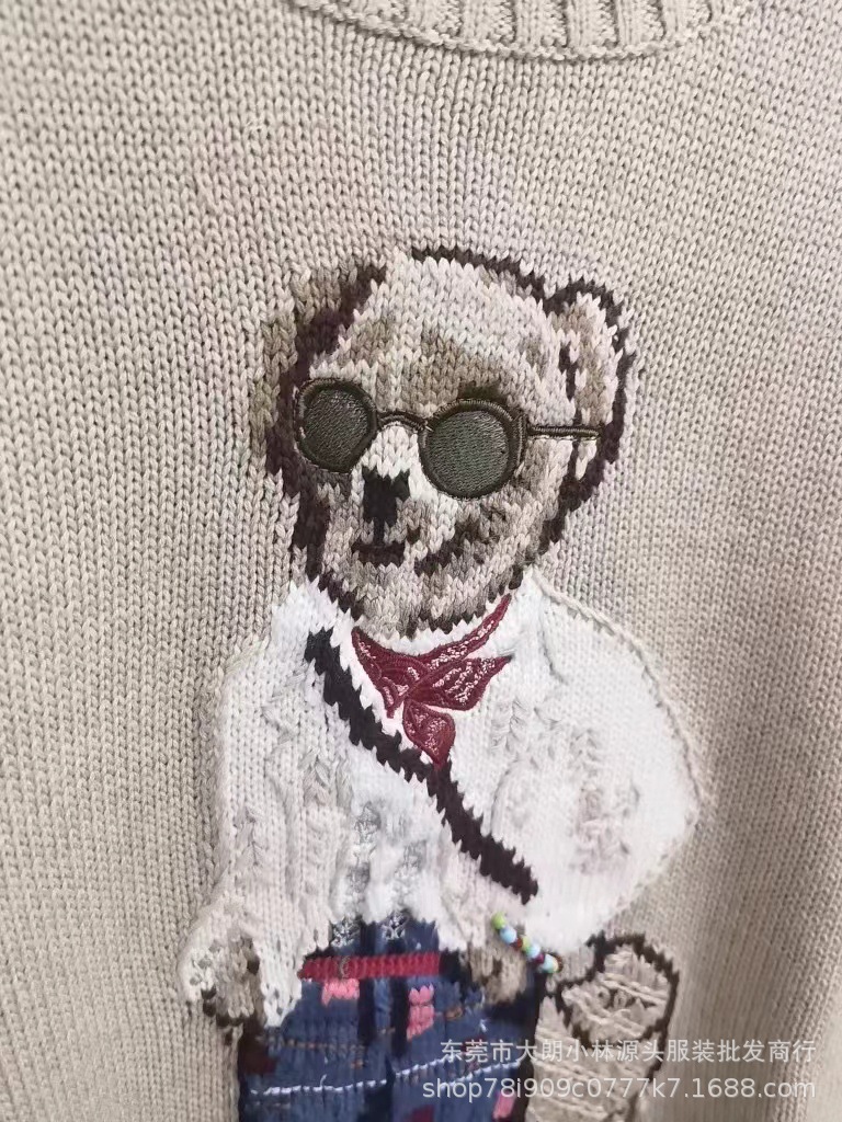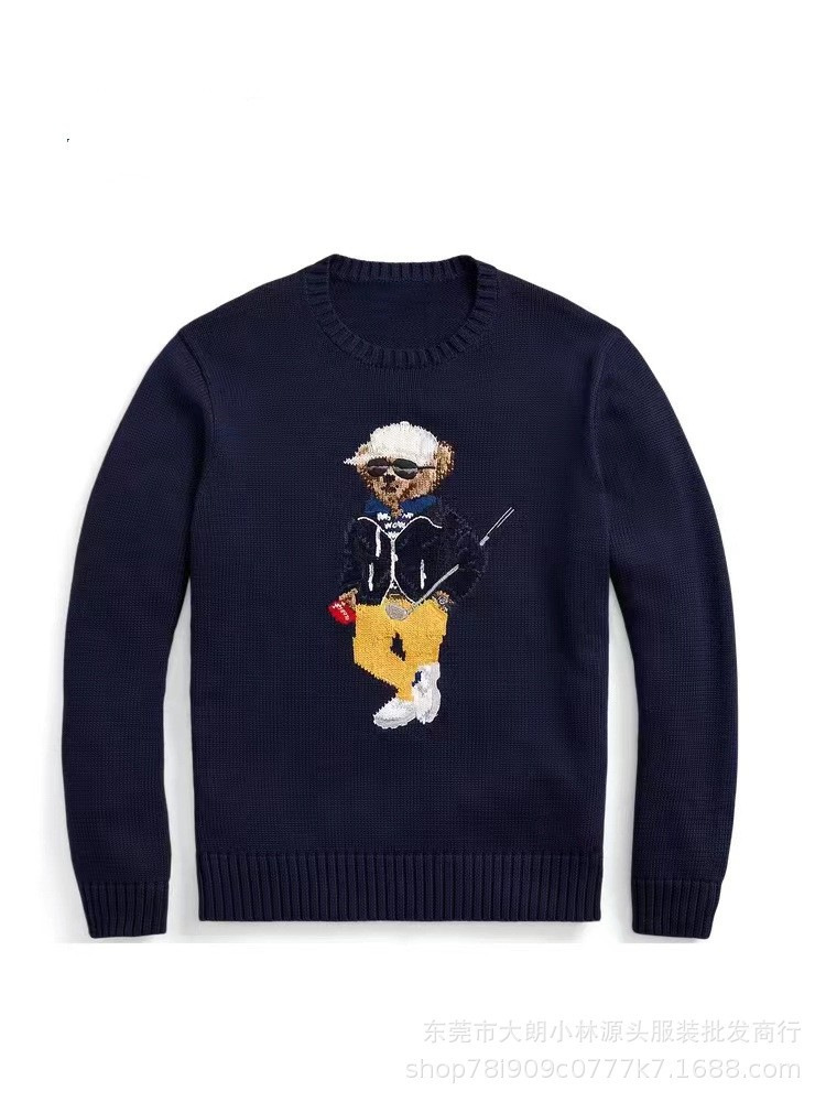 오리지널 가을 겨울 모델 순면 자수 중공예 만화 곰돌이 라운드넥 대학 스타일 젊어보이는 다용도 스웨터 남녀공용 A01