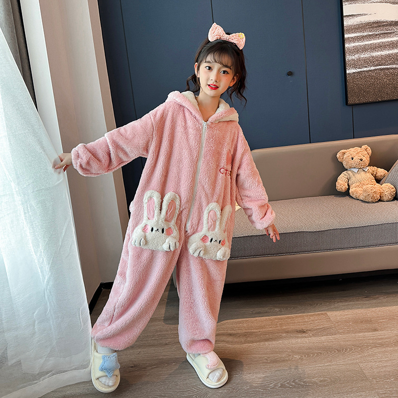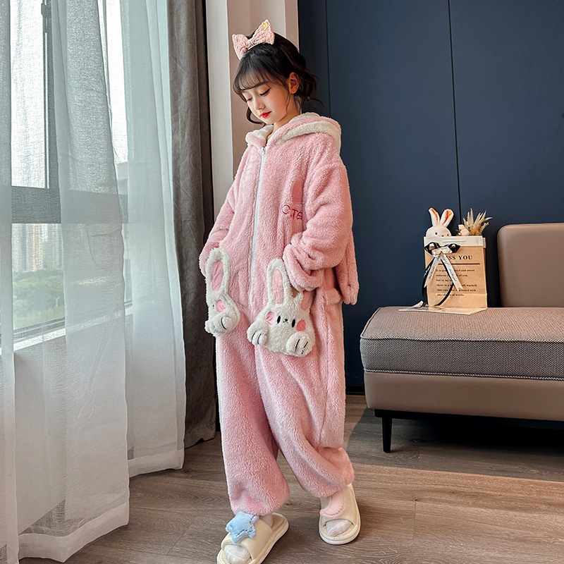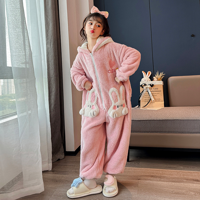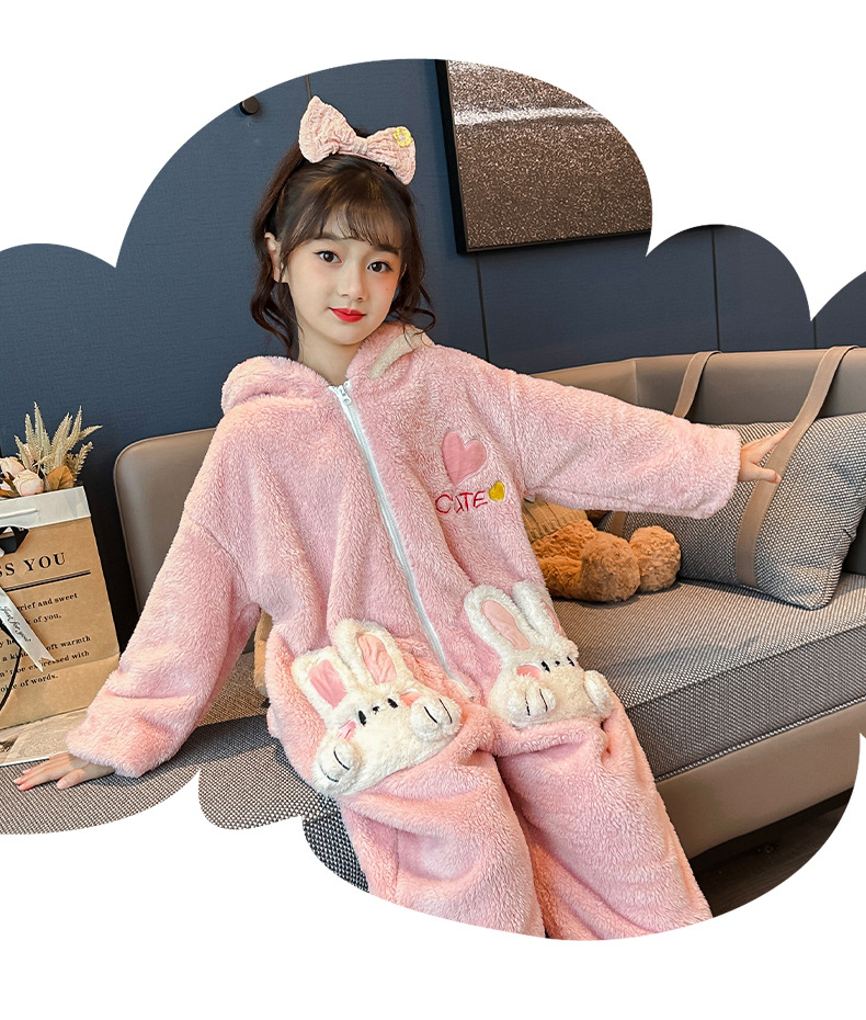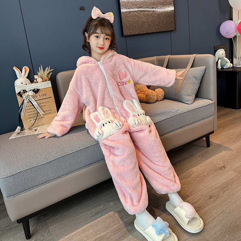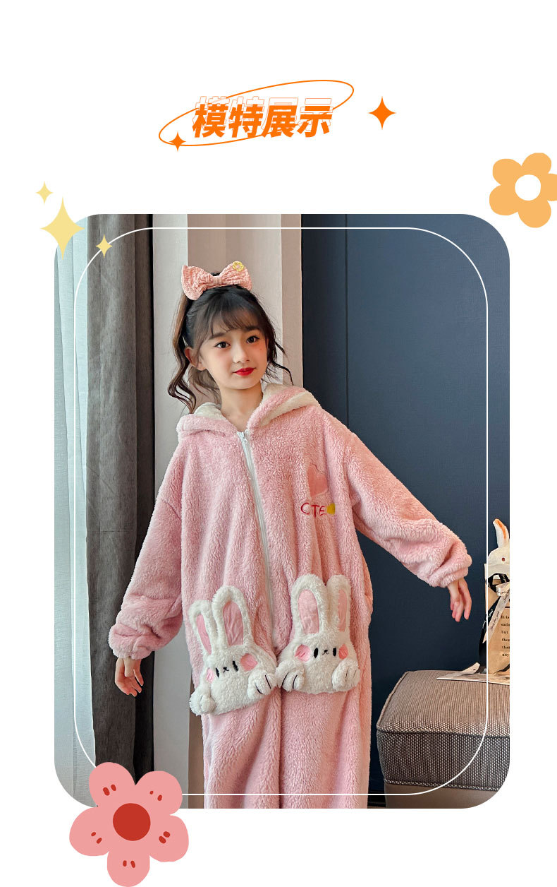가을과 겨울 소녀의 원피스 잠옷 산호 양털 어린이 귀여운 만화 소녀 중 큰 어린이 플란넬 따뜻한 홈웨어