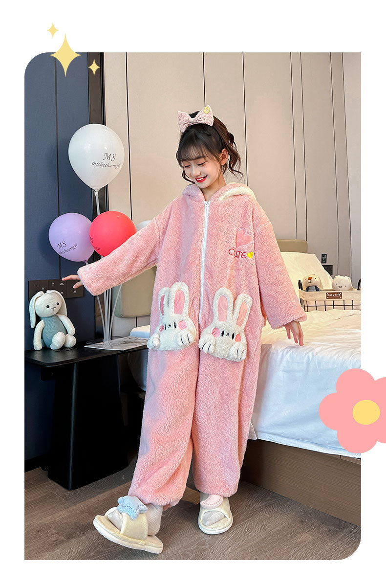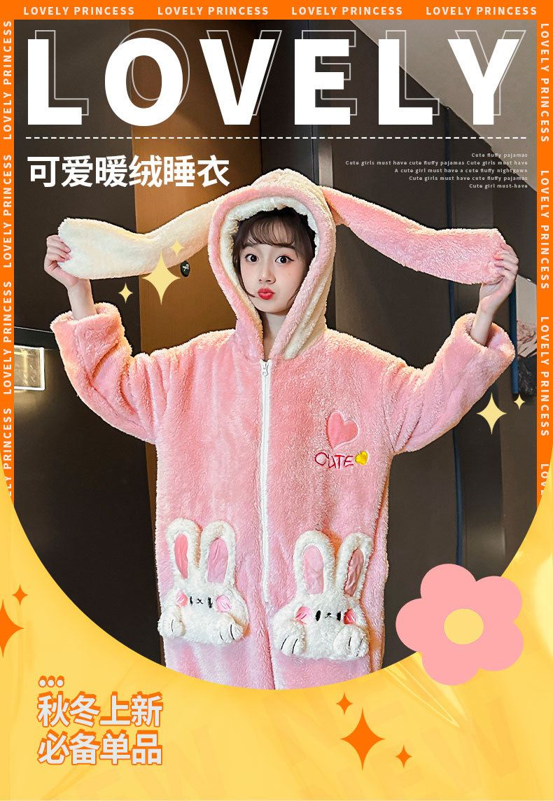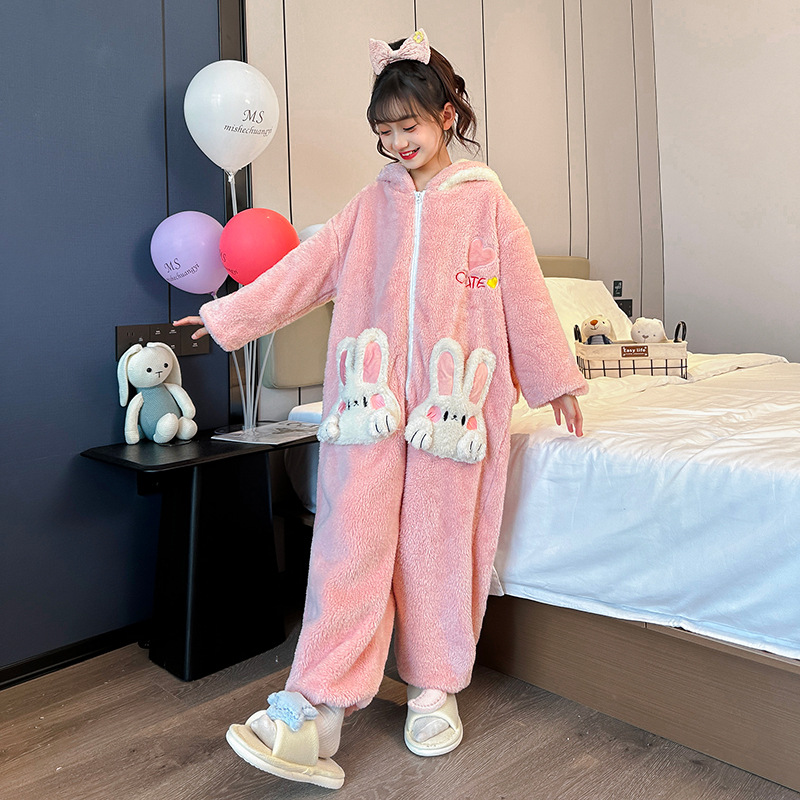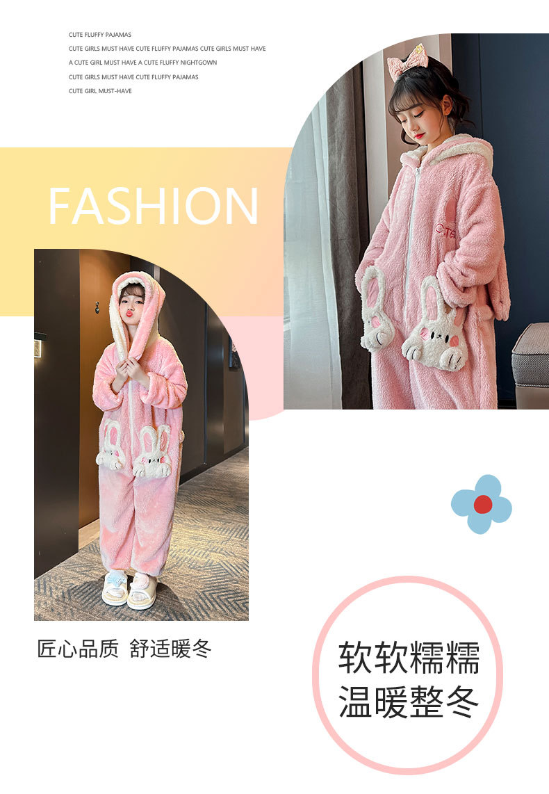 가을과 겨울 소녀의 원피스 잠옷 산호 양털 어린이 귀여운 만화 소녀 중 큰 어린이 플란넬 따뜻한 홈웨어스토어 가기