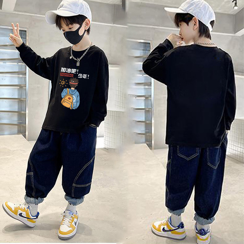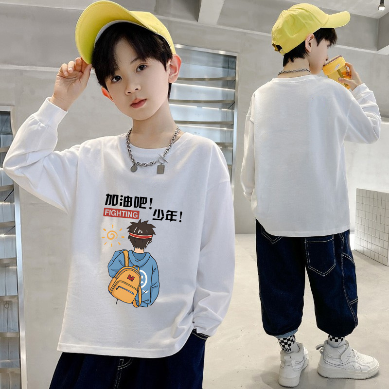 220g 순면 무거운 무게 아동복 소년 티셔츠 긴 소매 가을 어린이 큰 소년 코트 반소매 바닥 셔츠스토어 가기