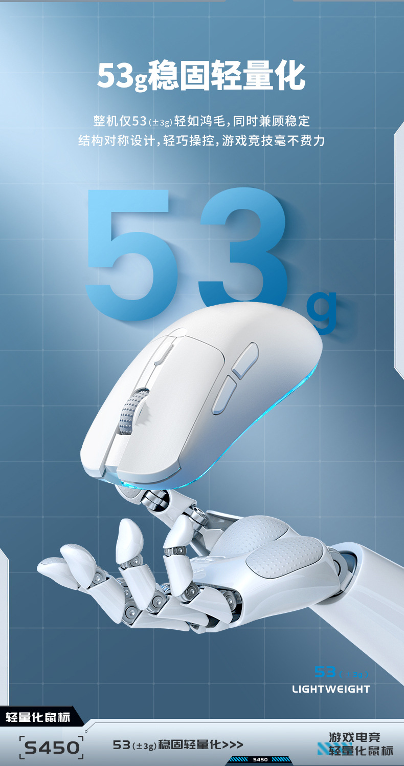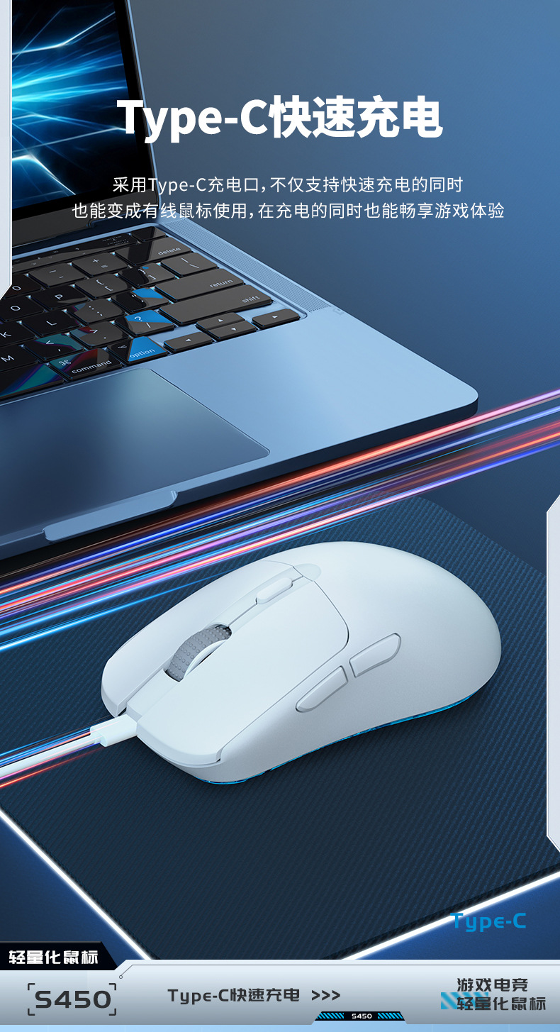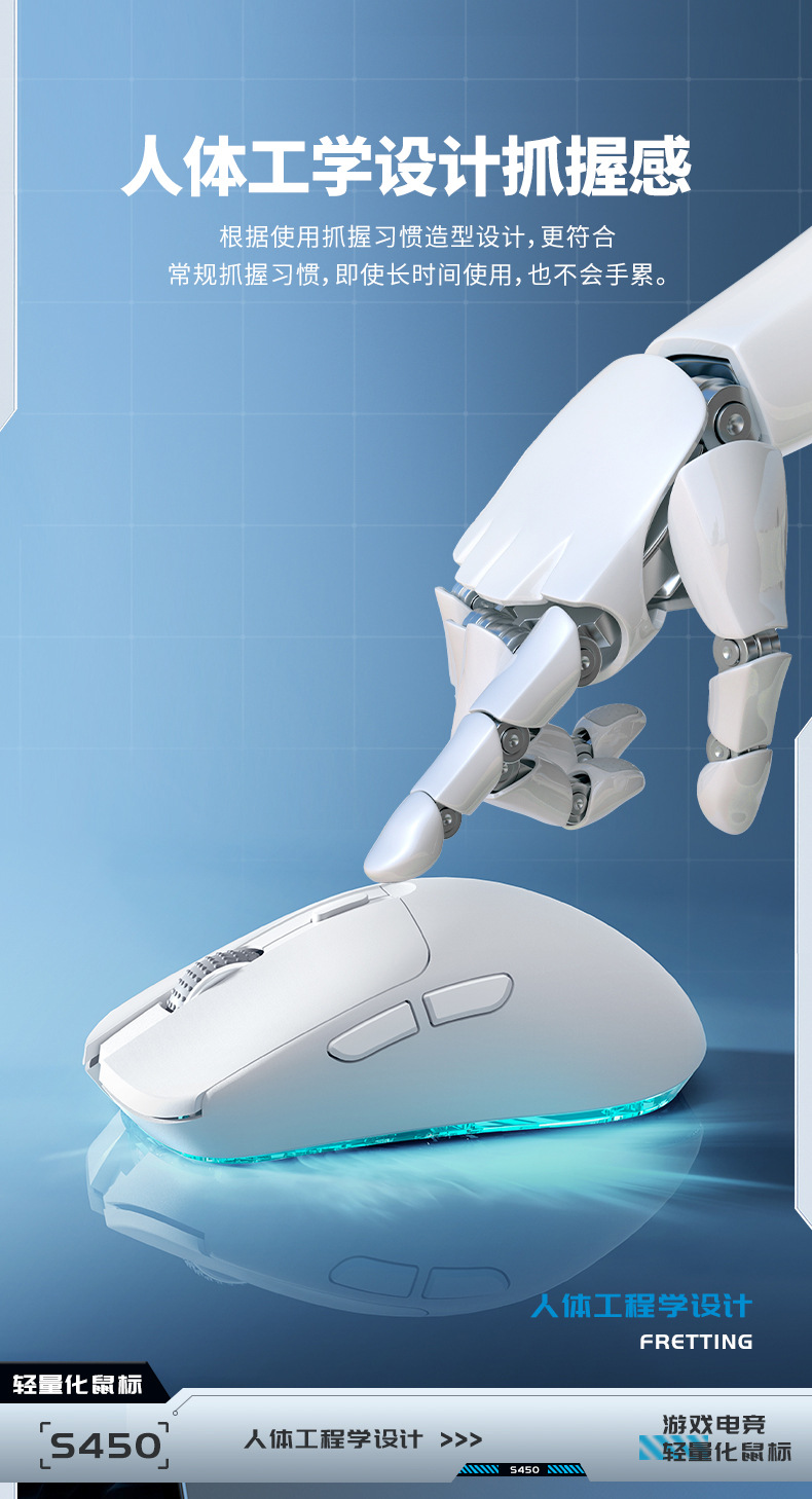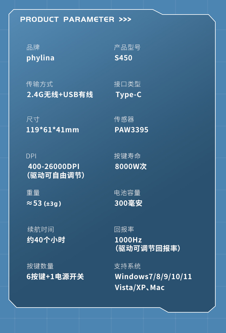 PHYLINA 무선 마우스 게이밍 e스포츠 충전식 듀얼 모드 S450 경량 기계식 크로스보더 오피스 컴퓨터스토어 가기