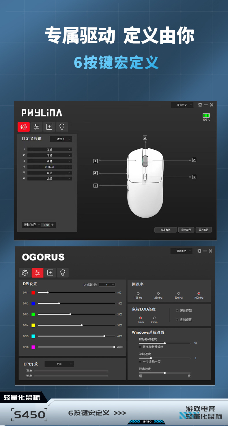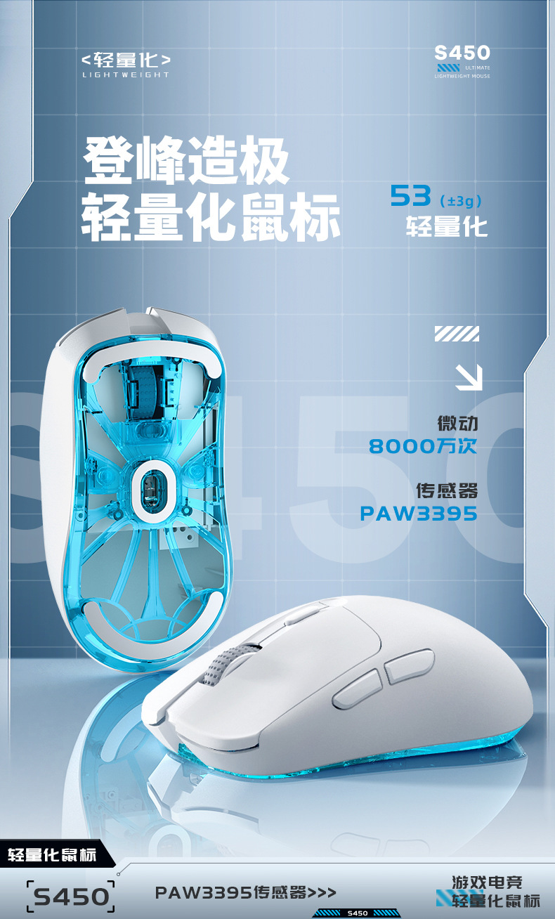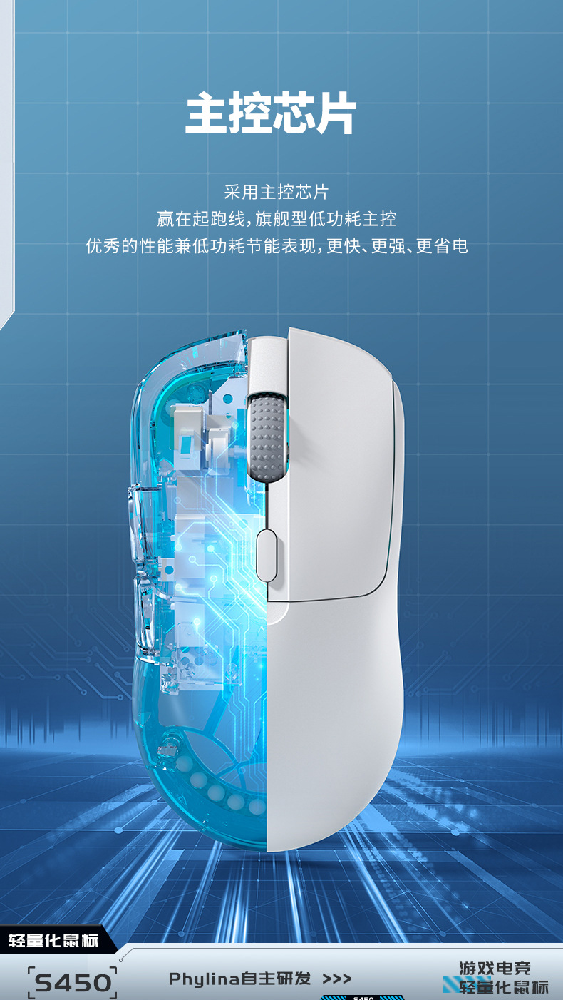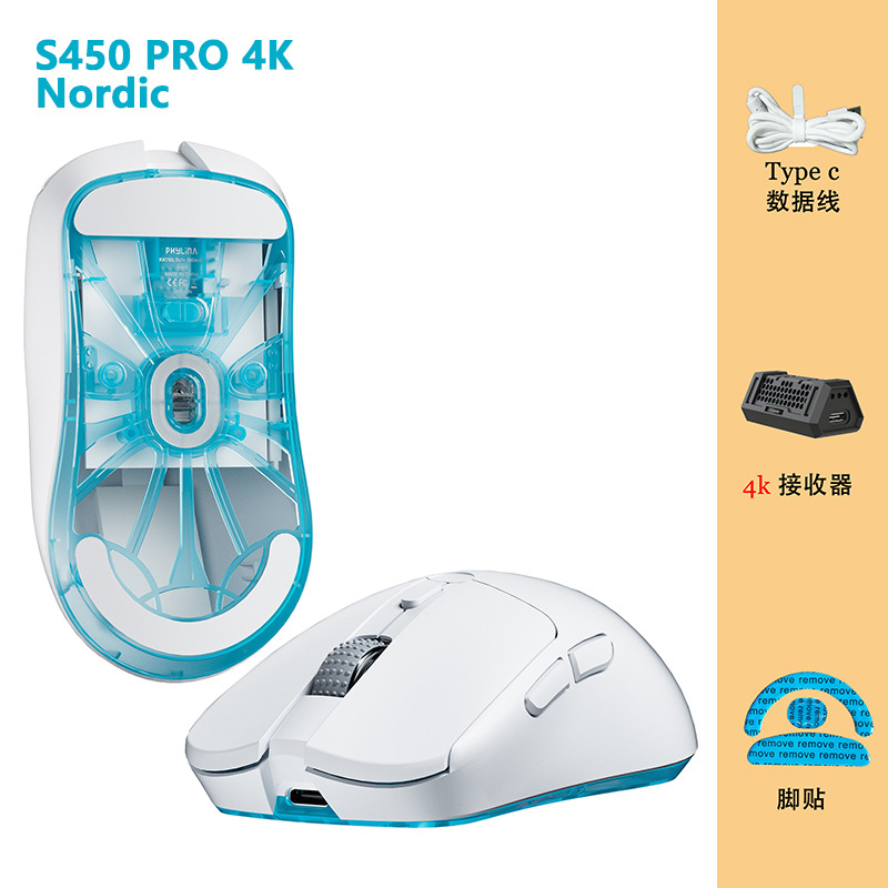 PHYLINA 무선 마우스 게이밍 e스포츠 충전식 듀얼 모드 S450 경량 기계식 크로스보더 오피스 컴퓨터