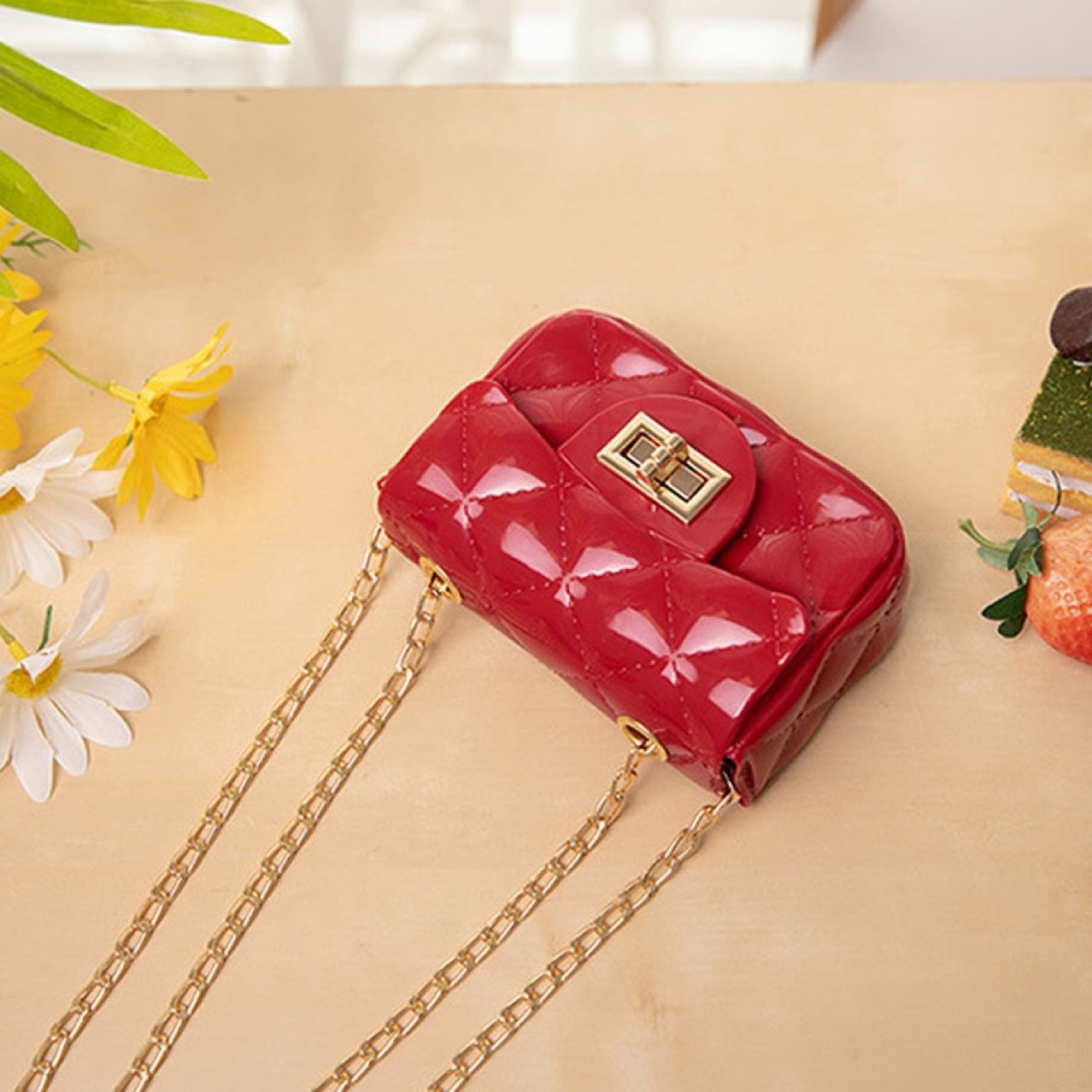국경 간 대외 무역 작은 가방 2024 새로운 젤리 가방 귀여운 미니 다이아몬드 체인 가방 작은 가방 어깨 입 빨간 봉투스토어 가기