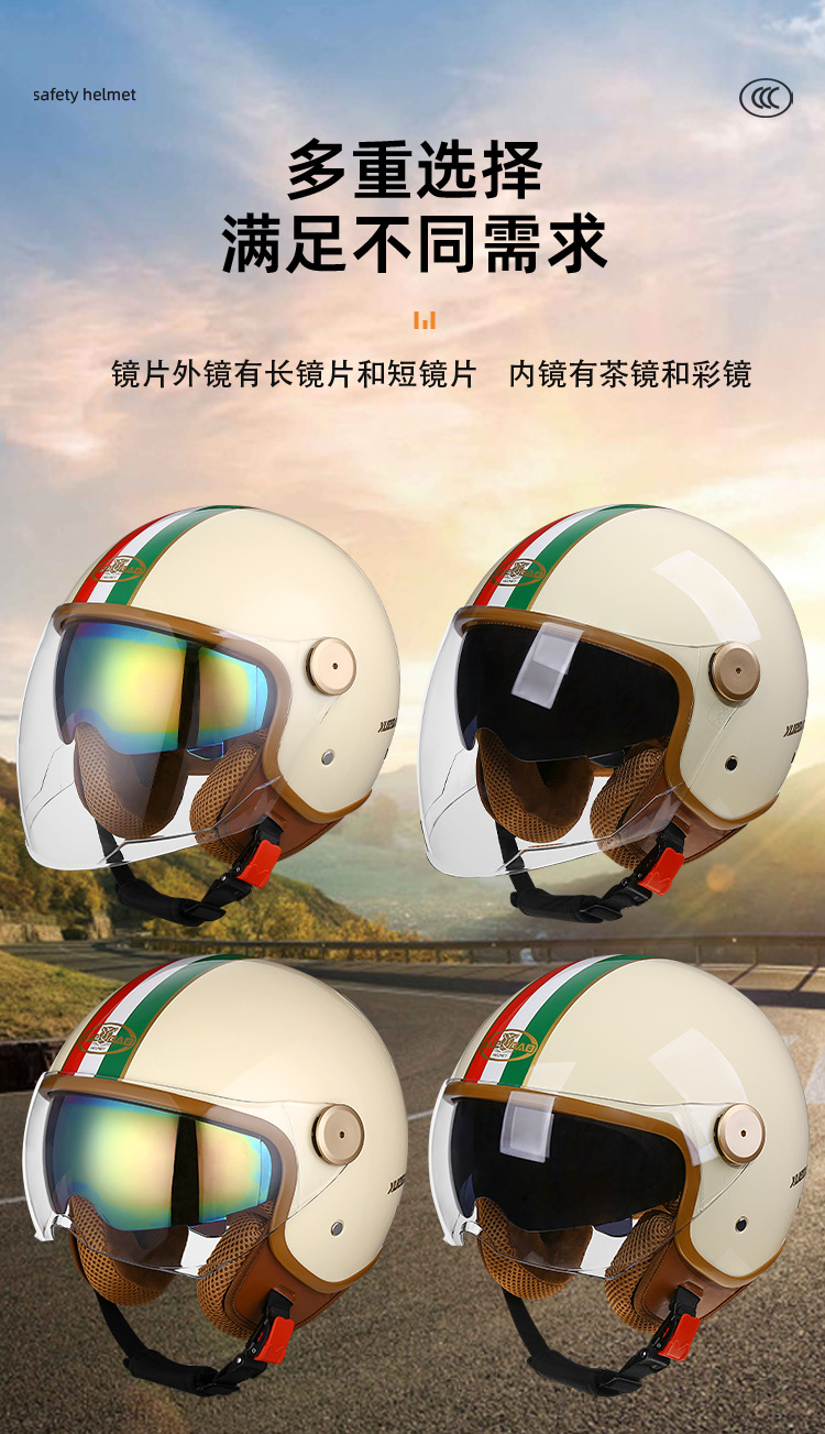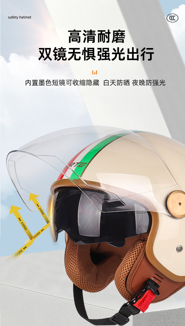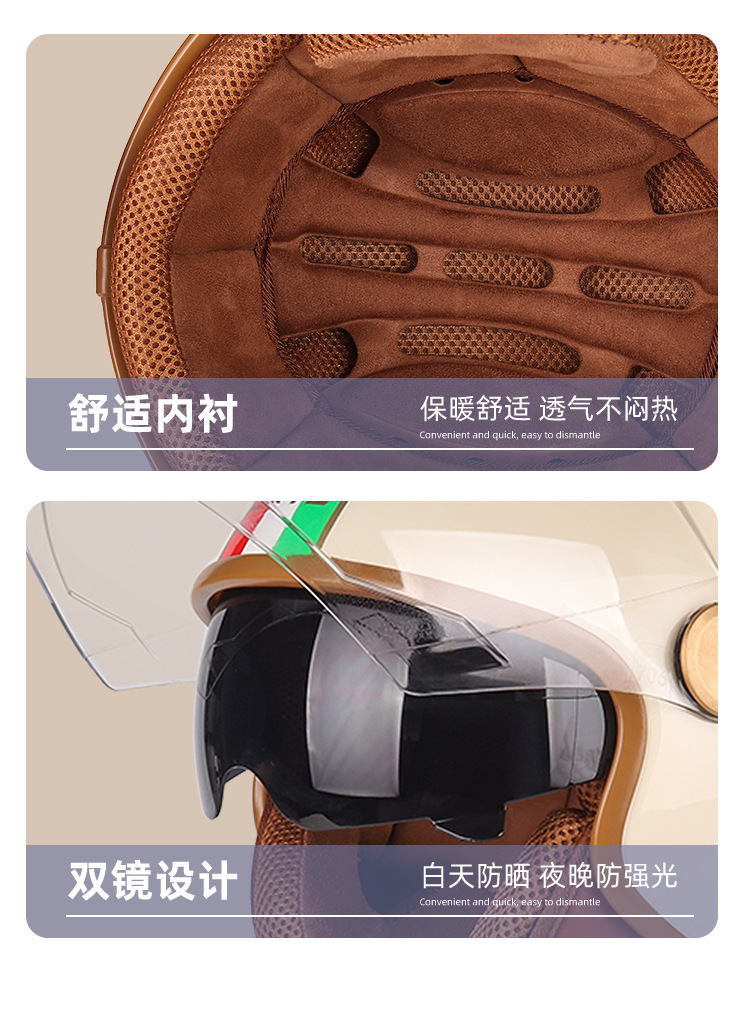 3.镜片:高强度PC强化双镜片。外镜可选长镜、短镜;内镜可选黑茶、彩镜。