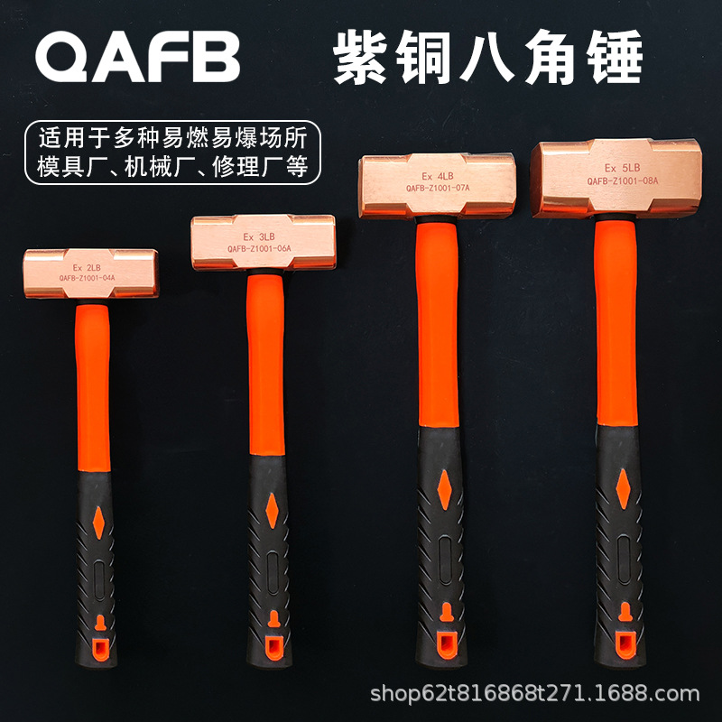 Qiaoan 방폭 레드 구리 팔각형 해머 솔리드 순수 구리 레드 구리 해머 비 스파크 플라스틱 핸들 슬레지 해머 소형 해머 발 무게 망치스토어 가기