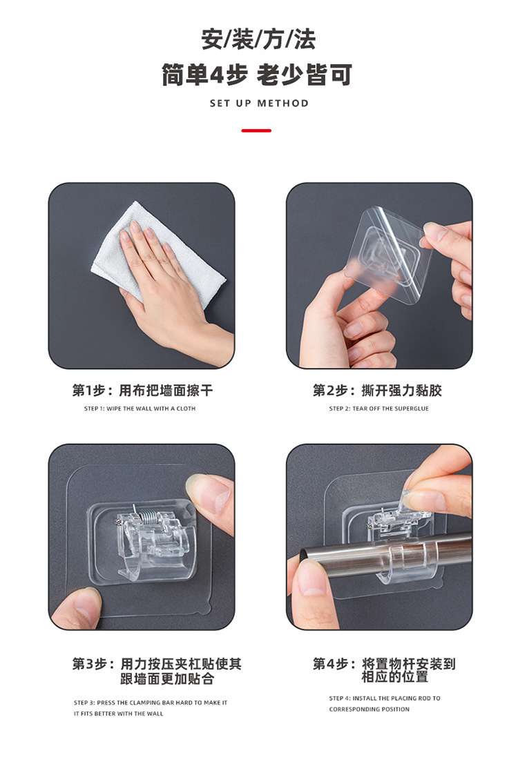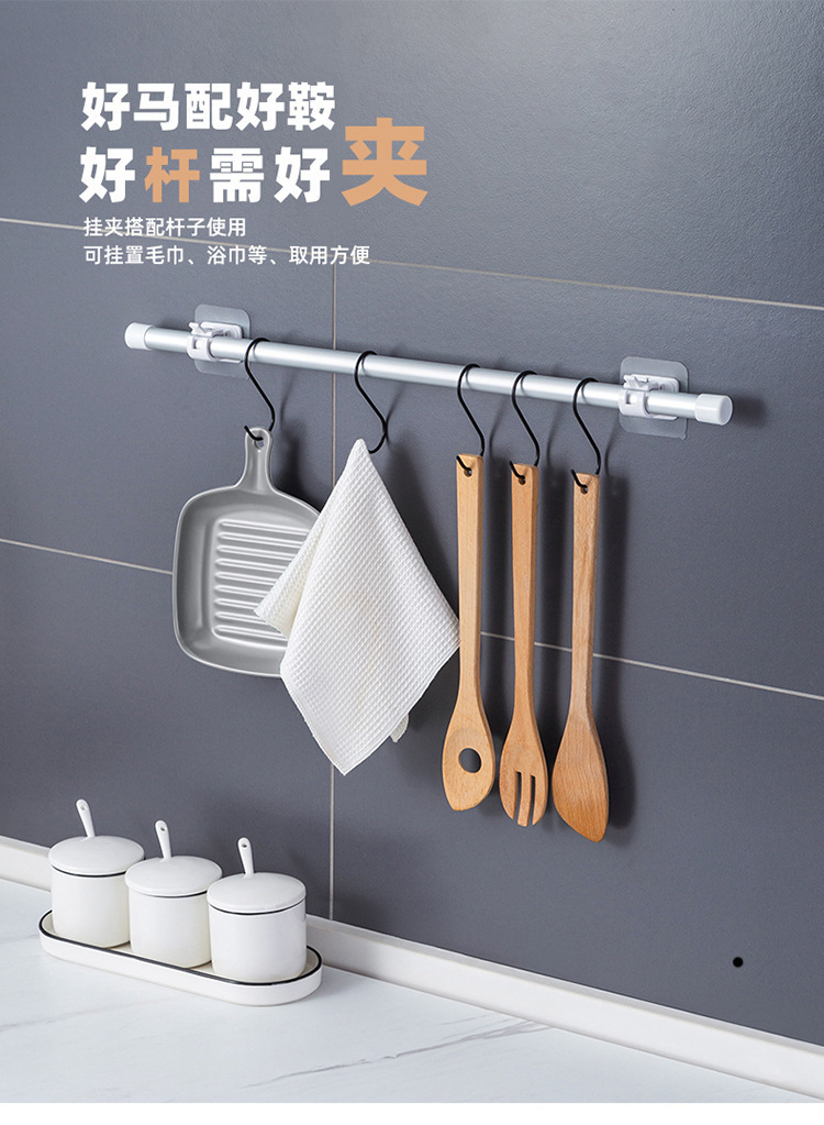 커튼로드 후크 텔레스코픽로드 고정 클립 홀더 패치없는 가정용 커튼 샤워 커튼 타월 도어 커튼 행잉로드 고정 장치스토어 가기