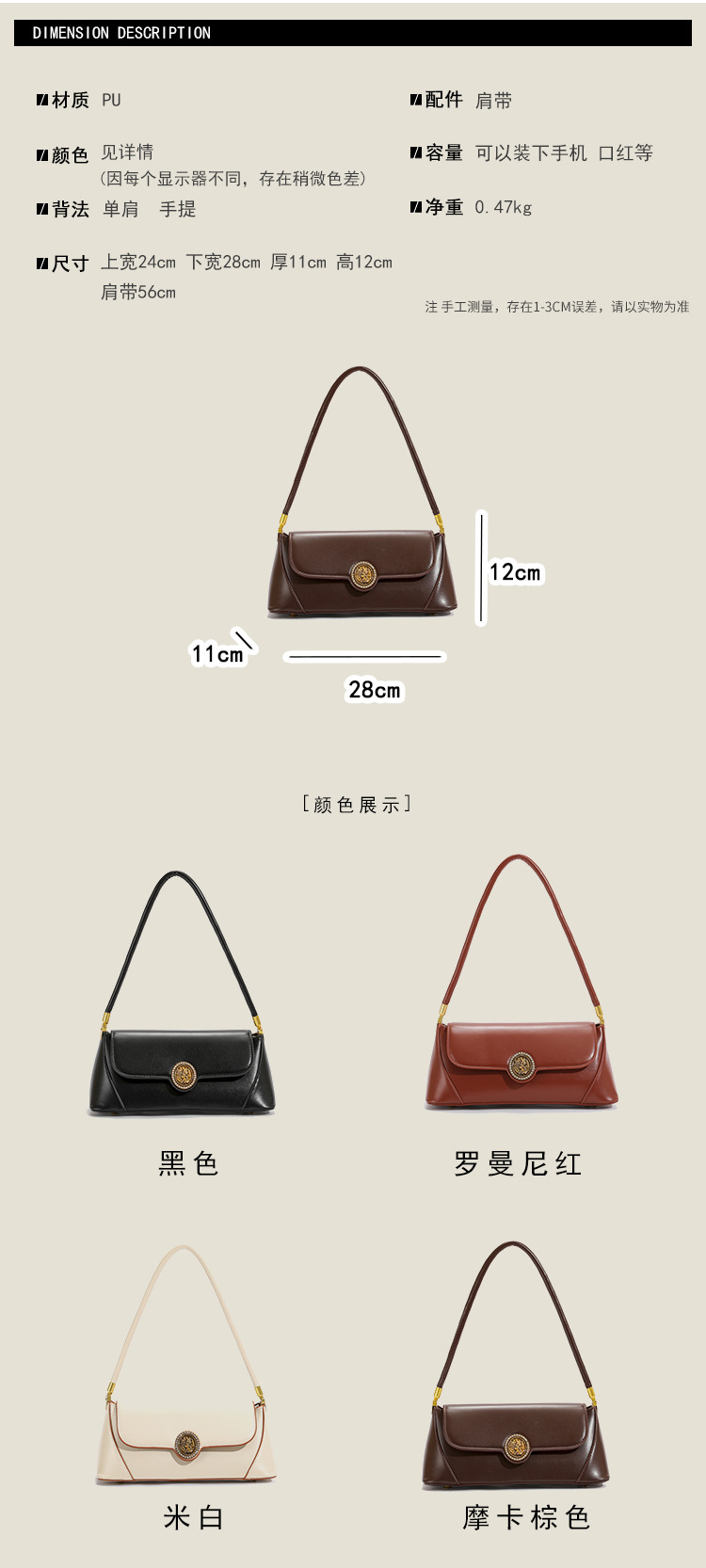 공장 직판 인기 폭발 싱글 숄더 심플 레트로 신상 2024 가을 여성 바게트 숄더백 크로스백스토어 가기