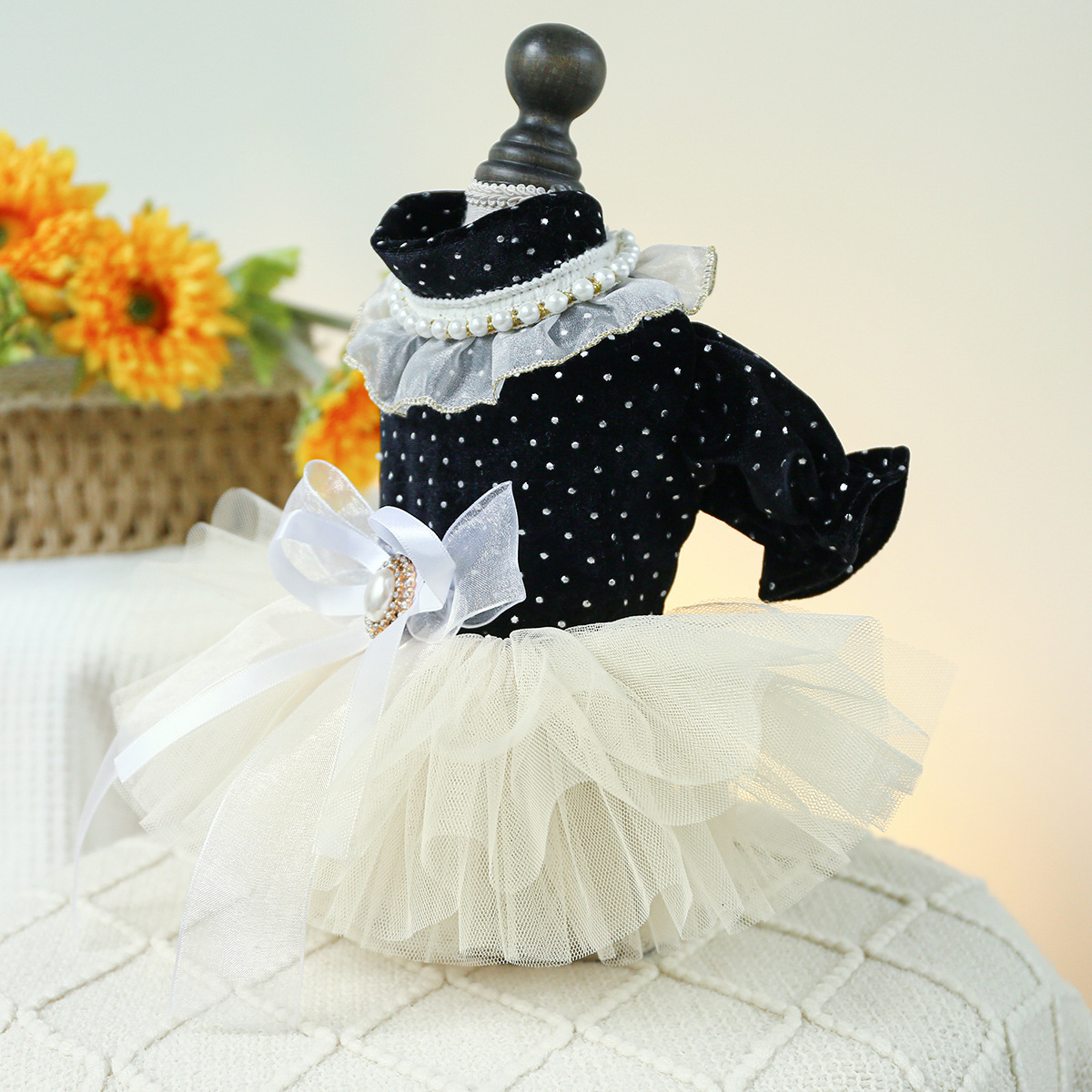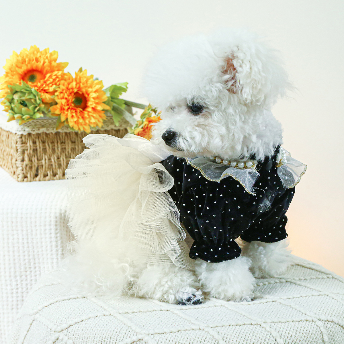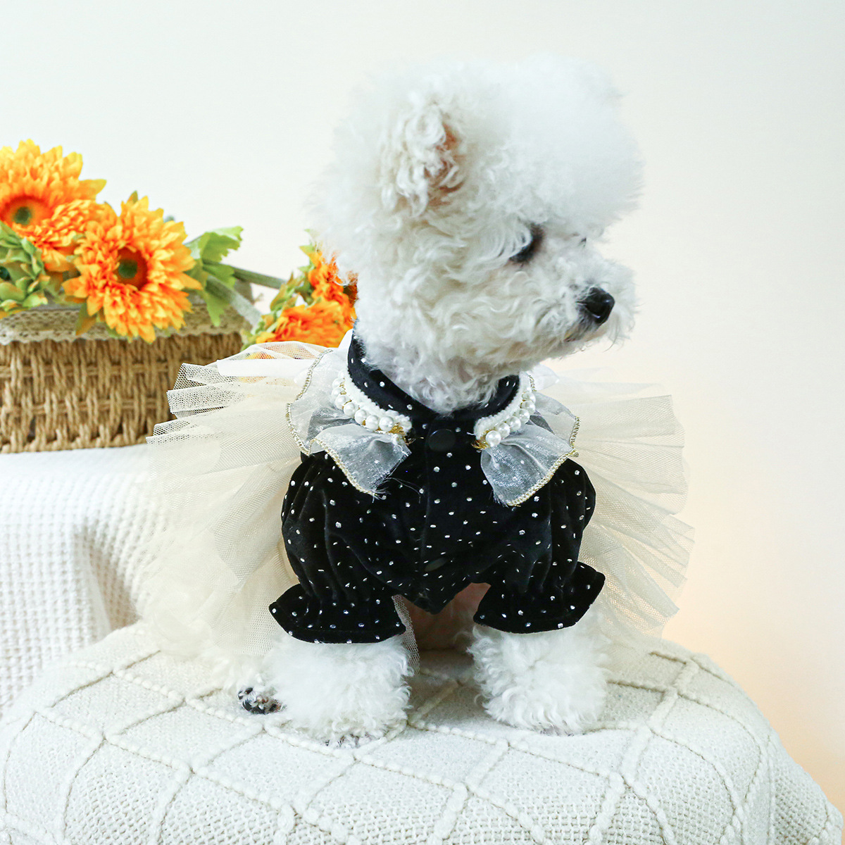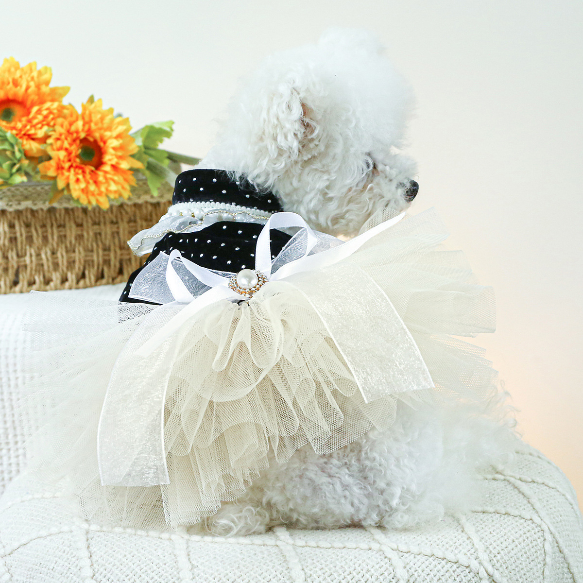 PETCIRCLE 애완 동물 반지 개 고양이 의류 푹신한 거즈 스커트 가슴 백 레이스 원피스 폴카 웨딩 원피스