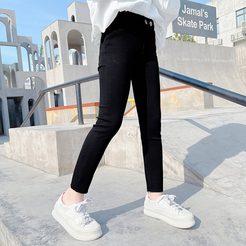 국경 간 도매 아동 바지 여아 바지 가을 청바지 어린이 봄 레깅스 외출용 큰 아이들 흑백 긴바지