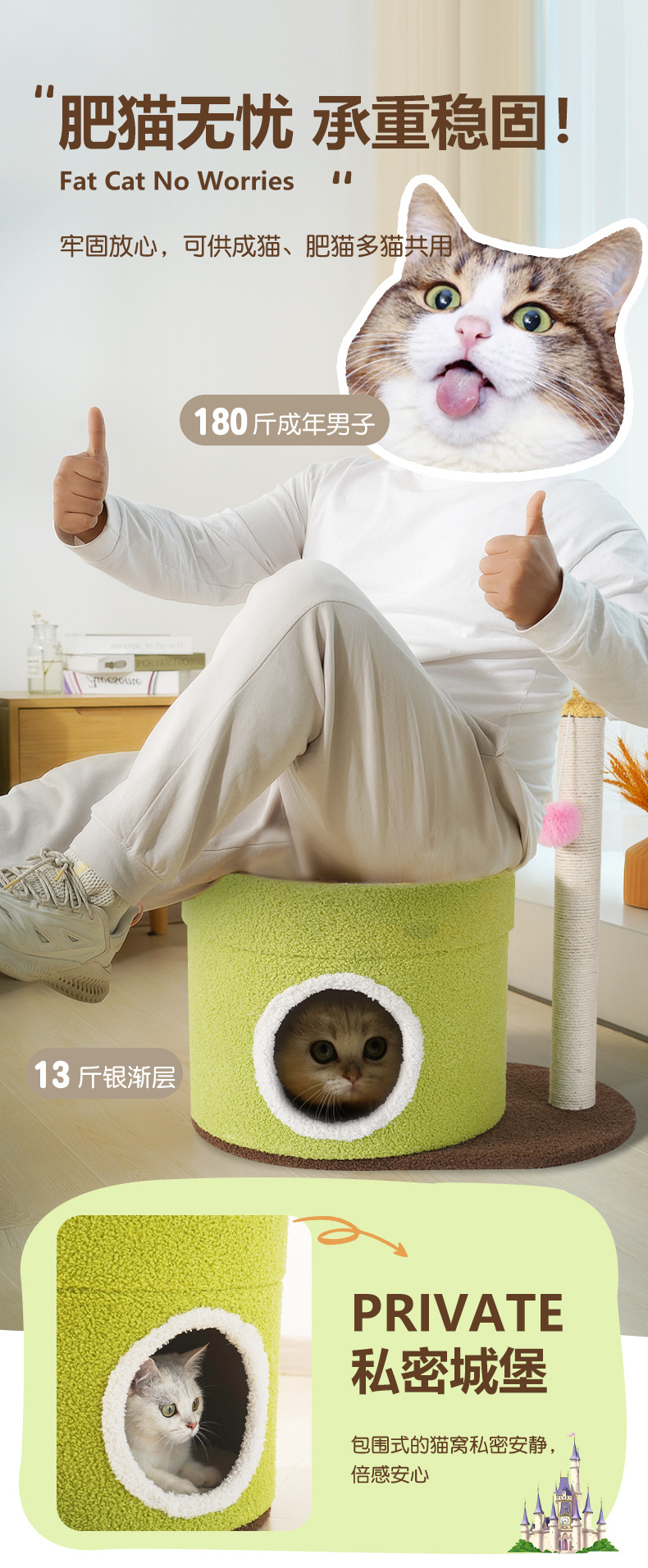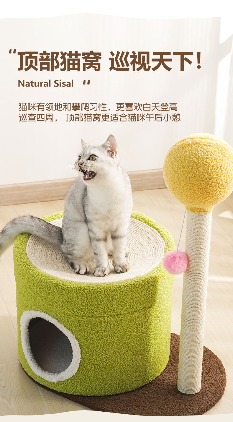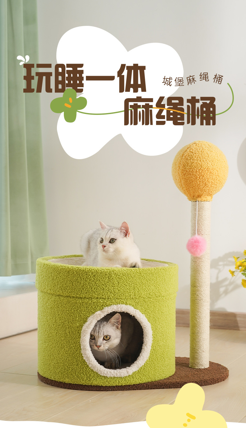 Miaoxianer Castle 대마 매트 버킷 고양이 둥지 및 고양이 스크래치 보드 일체형 내마모성 및 비 파편성 겨울 둥지는 모든 계절에 따뜻합니다.스토어 가기