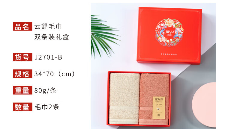 Jeyu Yunshu 수건 더블 팩 선물 상자 순수한면 수건 선물 상자
