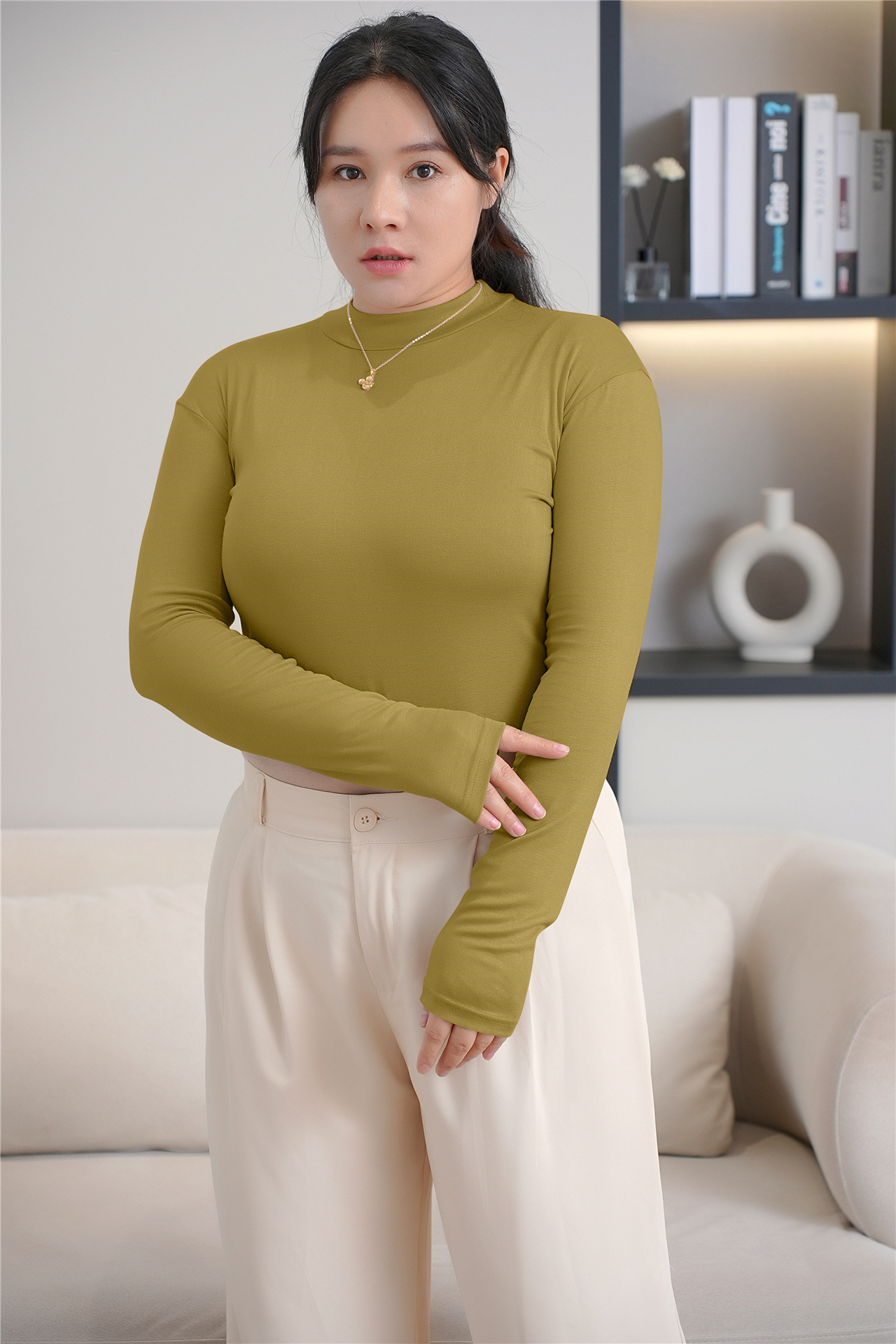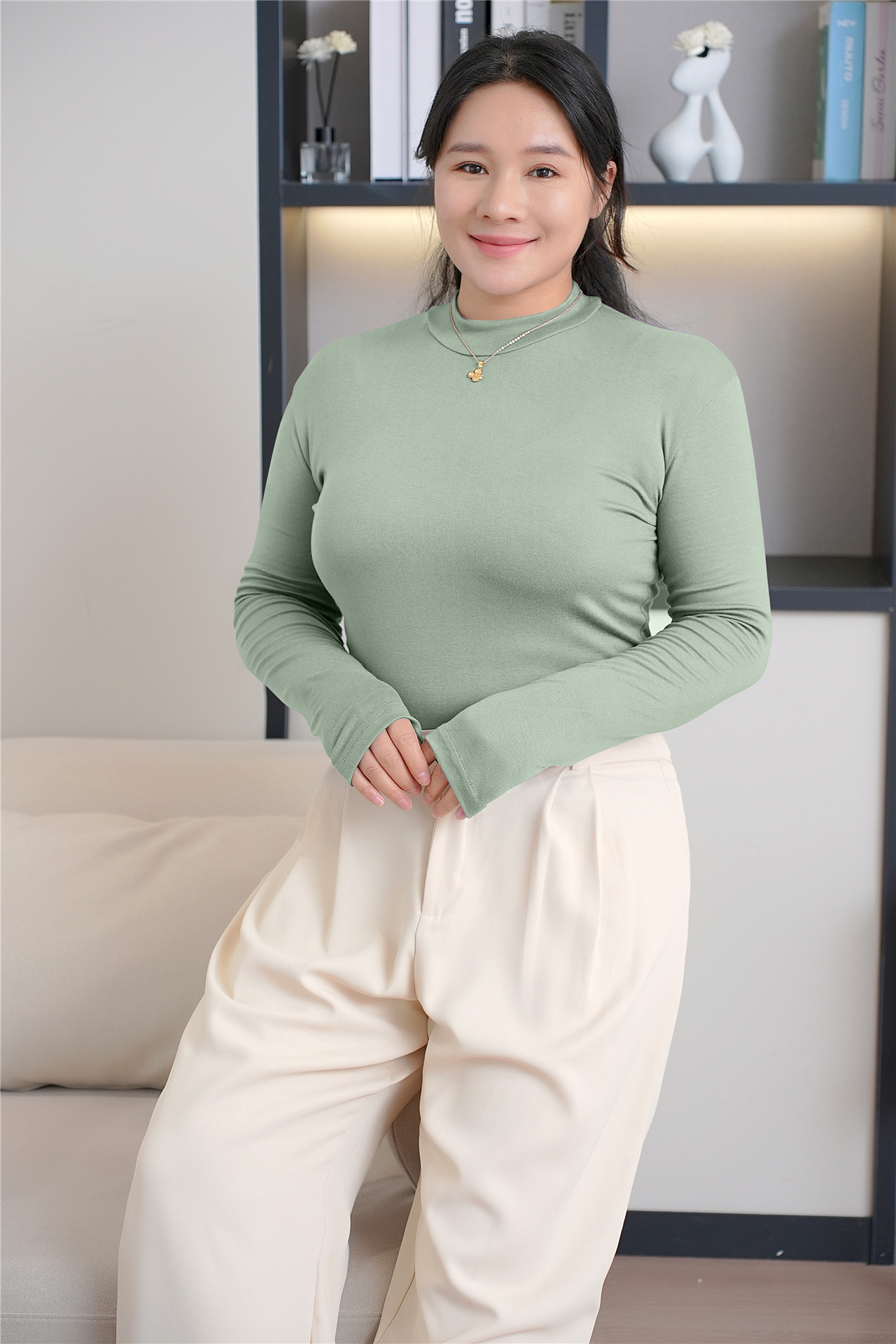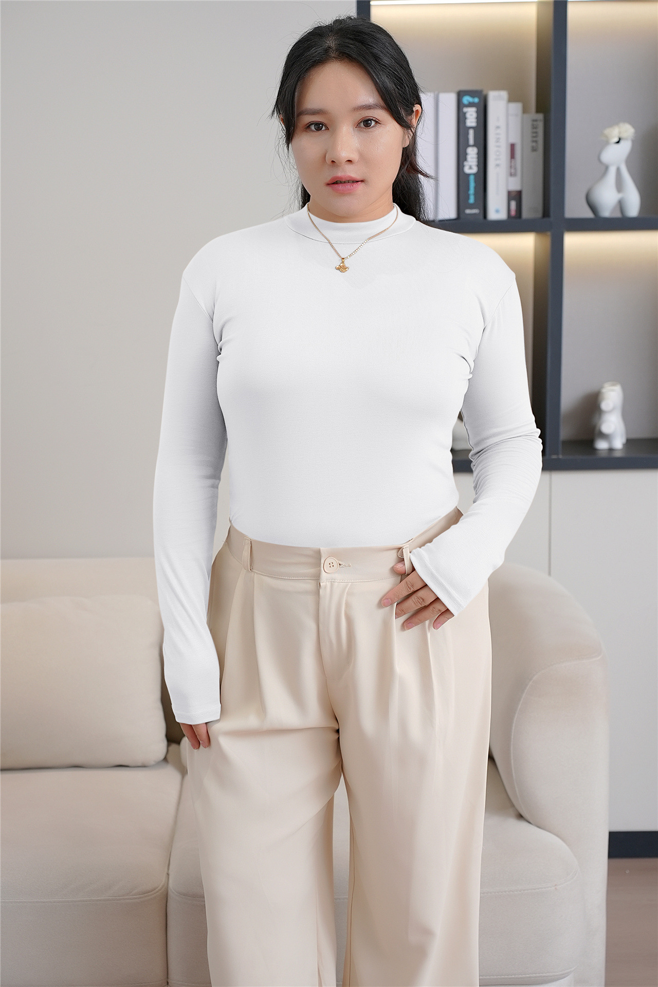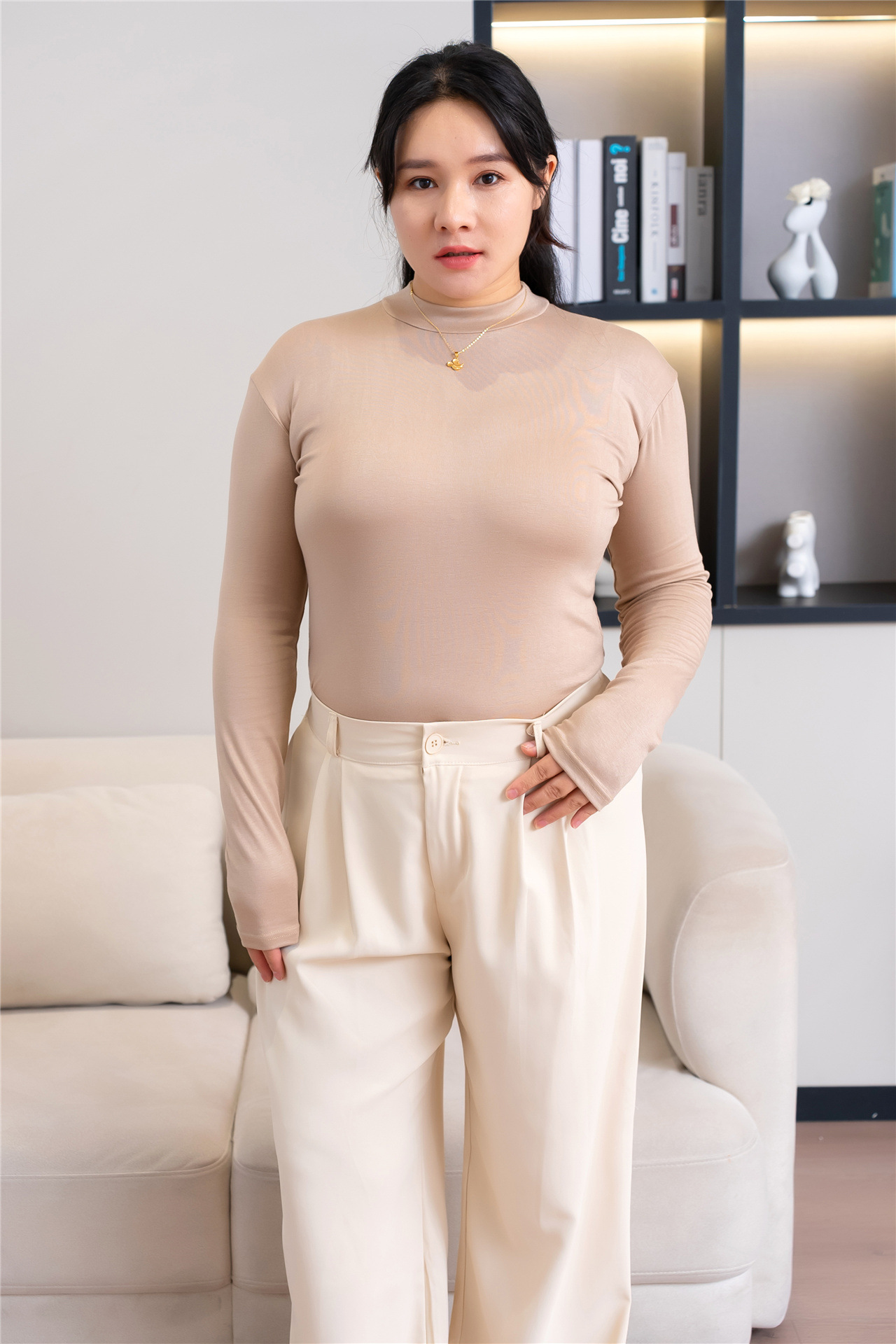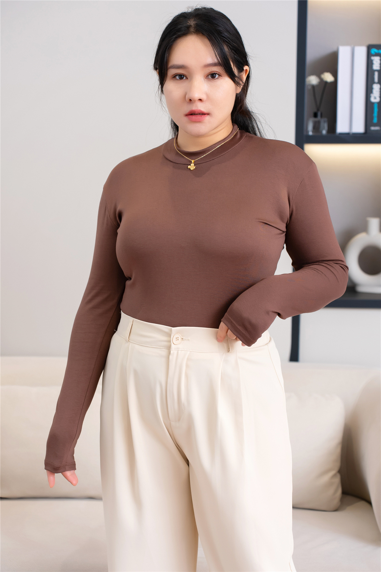 봄 플러스 사이즈 여성 모달 세미 하이 칼라 티셔츠 200kg 통통녀 및 긴 소매베이스 셔츠가있는 지방