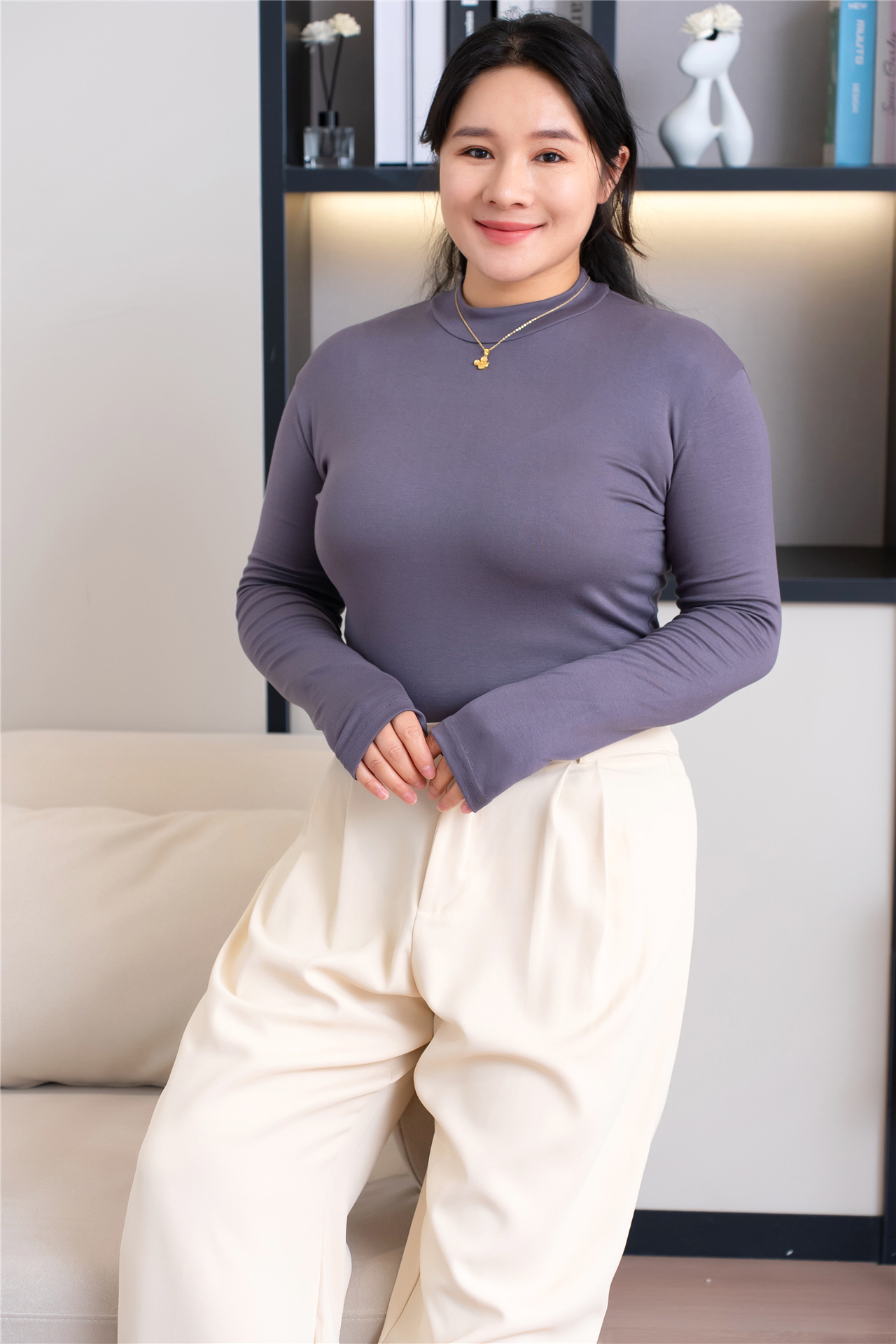봄 플러스 사이즈 여성 모달 세미 하이 칼라 티셔츠 200kg 통통녀 및 긴 소매베이스 셔츠가있는 지방스토어 가기