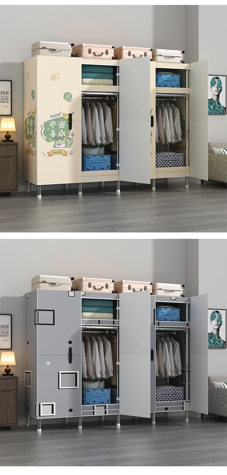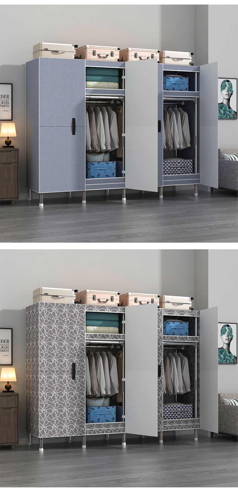 마그네틱 오픈 도어 간단한 옷장 두꺼운 강화 두꺼운 전체 강철 프레임 강력하고 튼튼한 침실 조립 보관 옷장