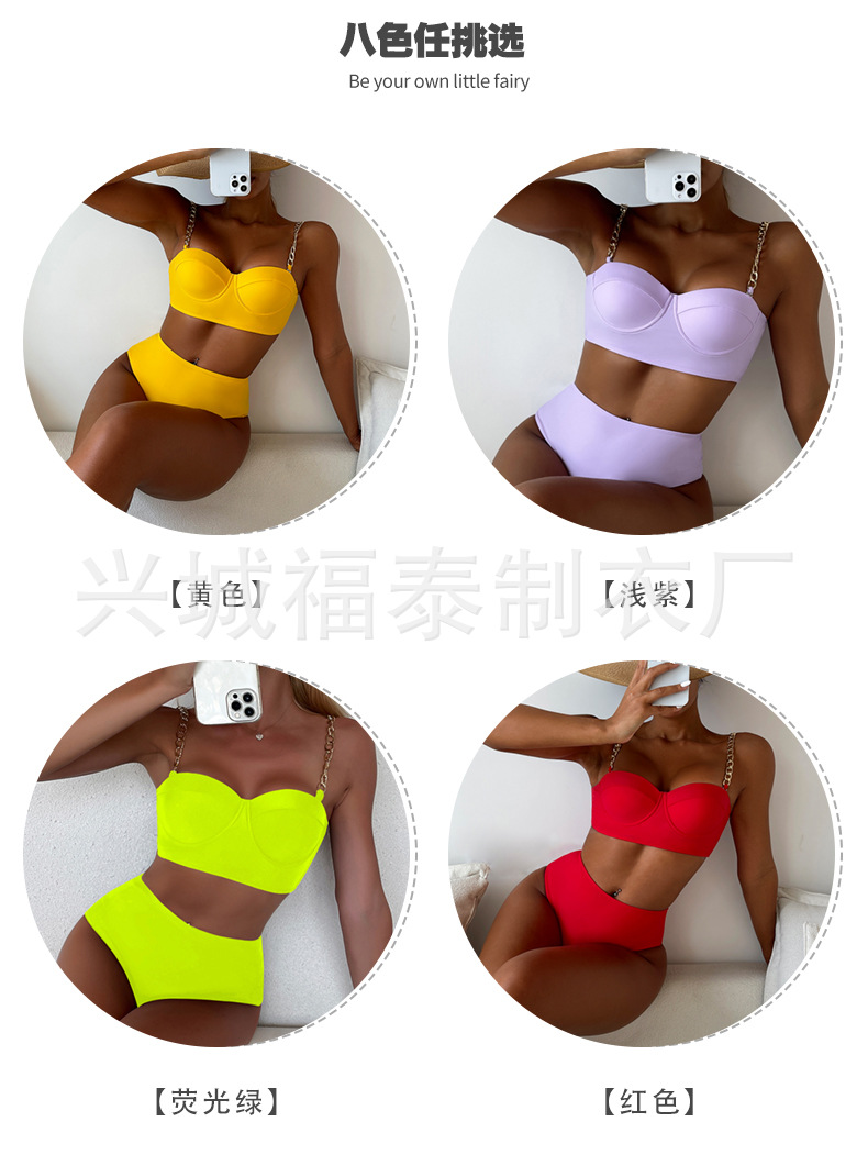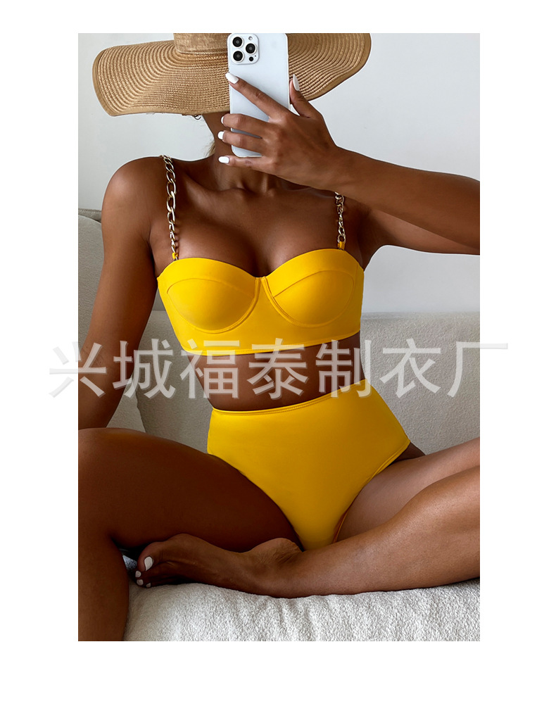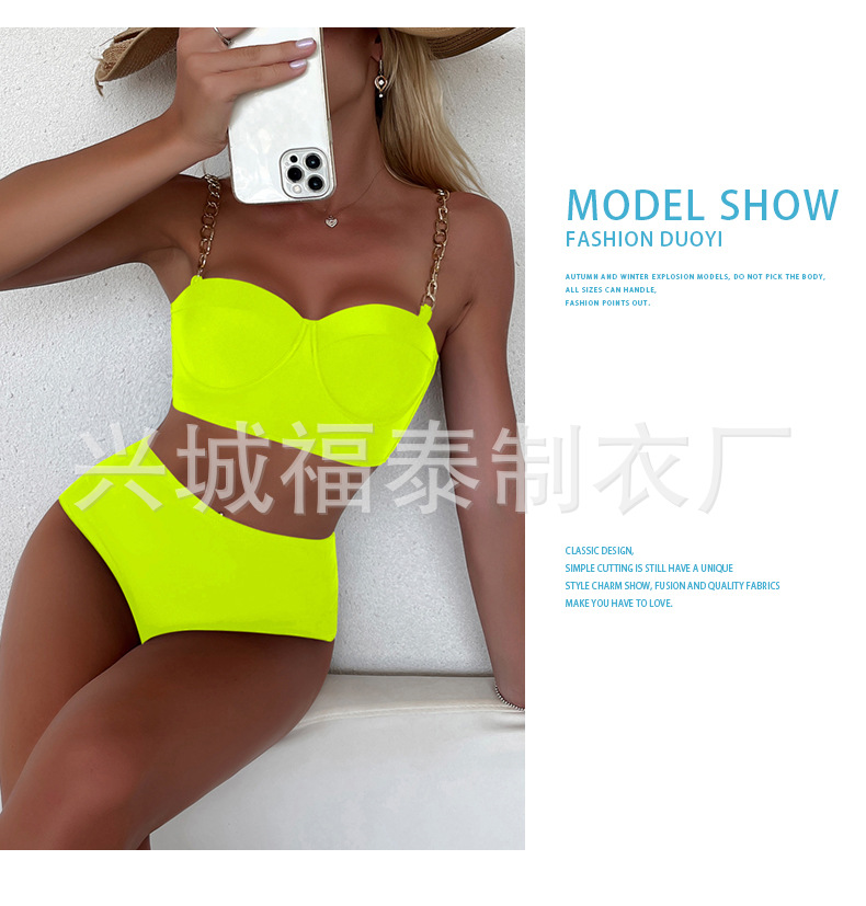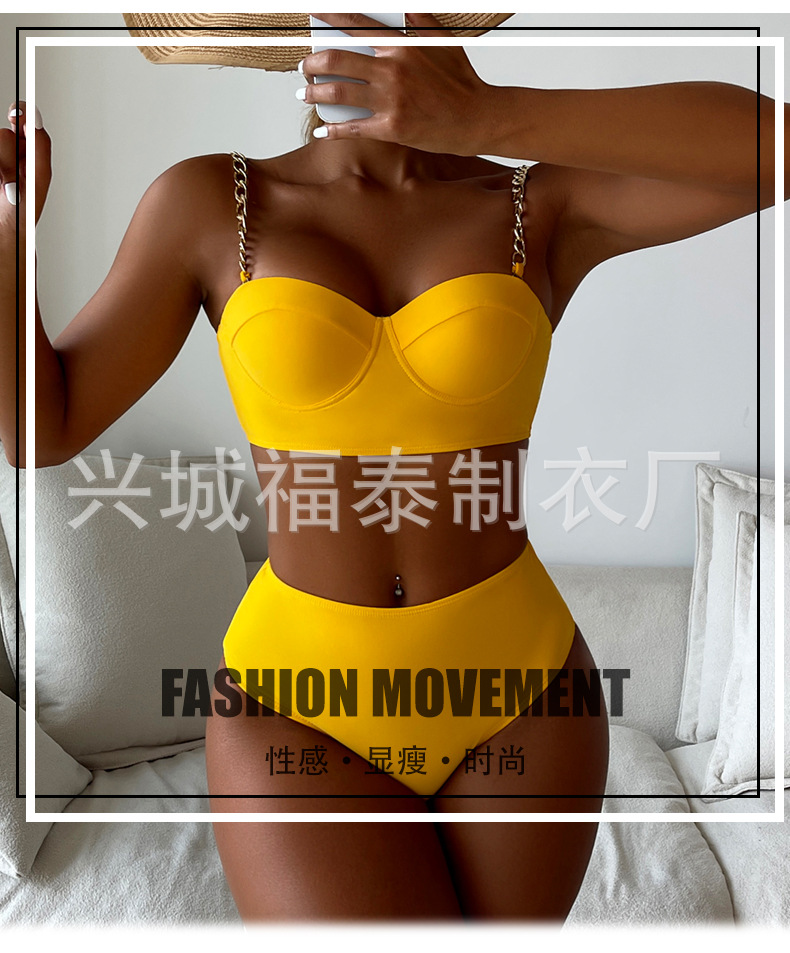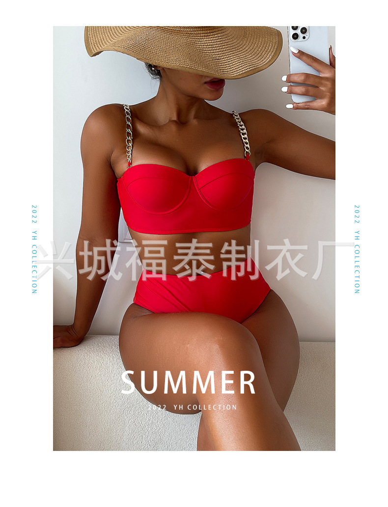 금속 체인 스트랩 섹시한 스틸 브라켓이 모여 스플릿 수영복 여성용 비키니 크로스 보더 유럽과 미국 수출 도매 아마존스토어 가기