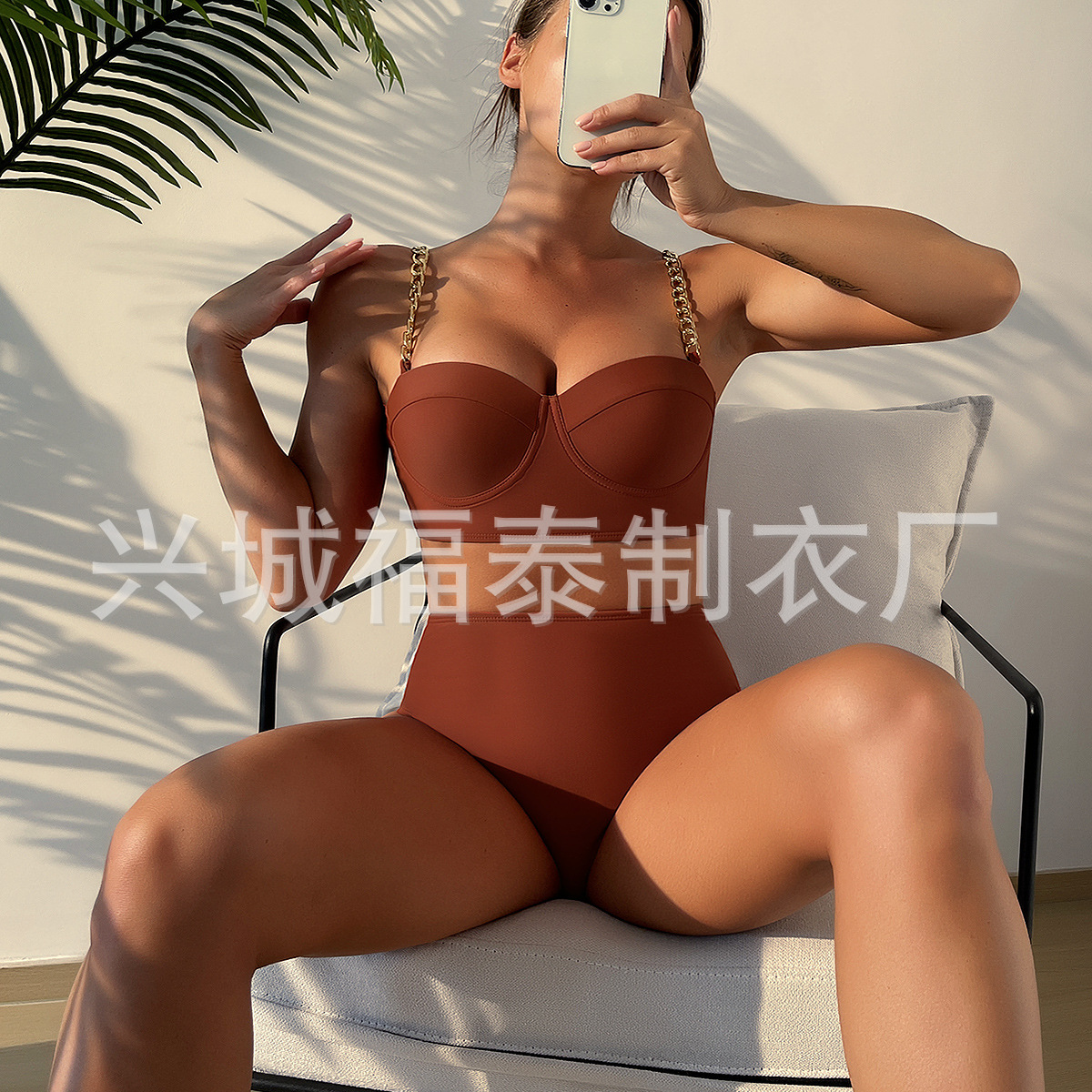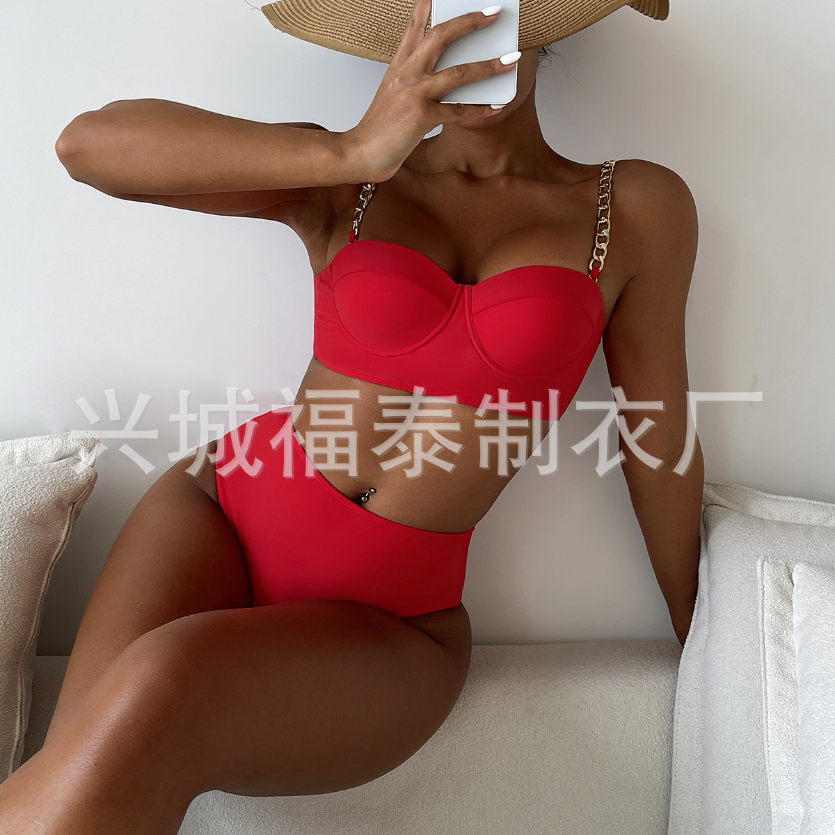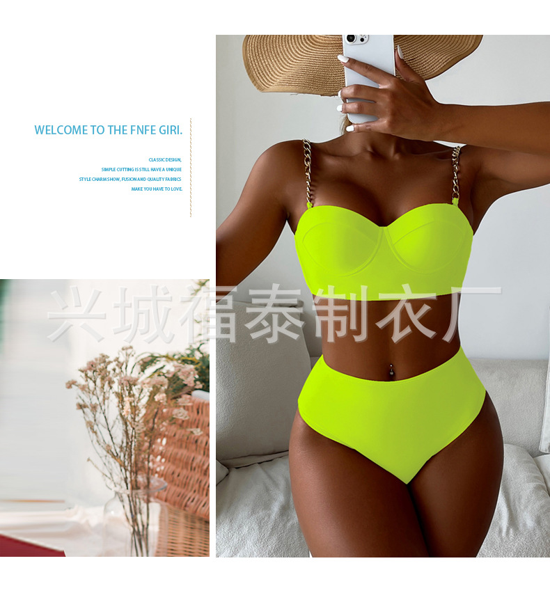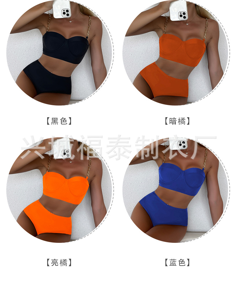 금속 체인 스트랩 섹시한 스틸 브라켓이 모여 스플릿 수영복 여성용 비키니 크로스 보더 유럽과 미국 수출 도매 아마존스토어 가기
