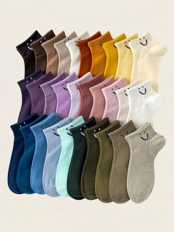 크로스보더 신상품 테무 인기상품 컬러풀 스마일 중목 양말 유럽 및 미국 트렌드 남녀공용 빅사이즈 양말 주지 양말 산업스토어 가기