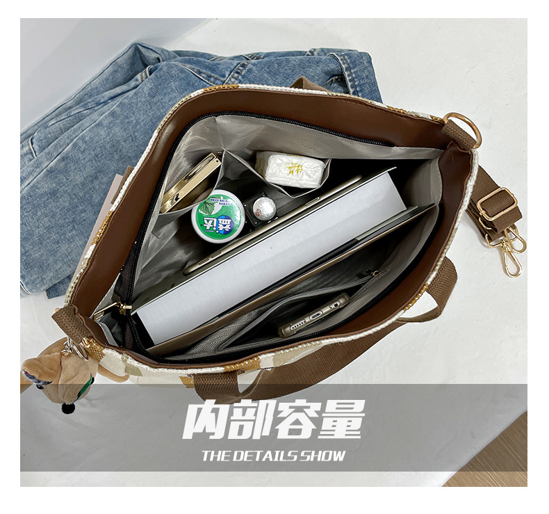 새로운 트렌디한 숄더백, 패셔너블한 도시풍 대용량 캔버스 질감 핸드백, 심플한 출퇴근용 캐주얼 토트백