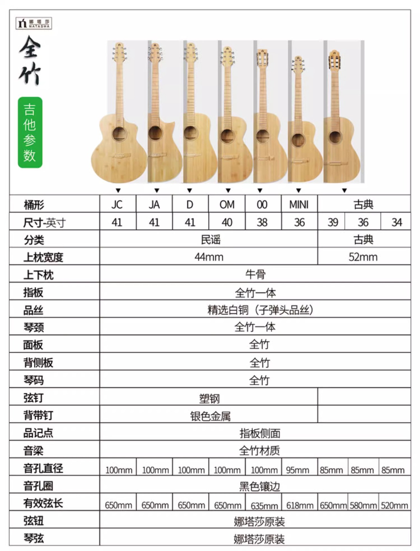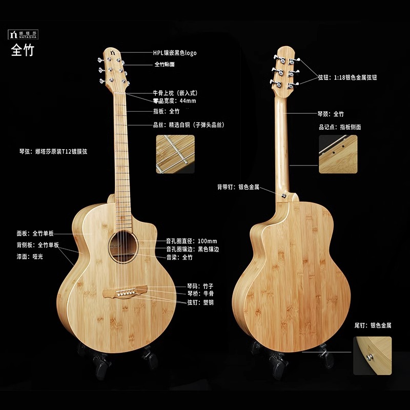 Natasha natasha 대나무 36 인치 38 인치 40 인치 41 인치 민속 손가락 연주 및 노래 플러스 진동 상자 초보자 기타스토어 가기