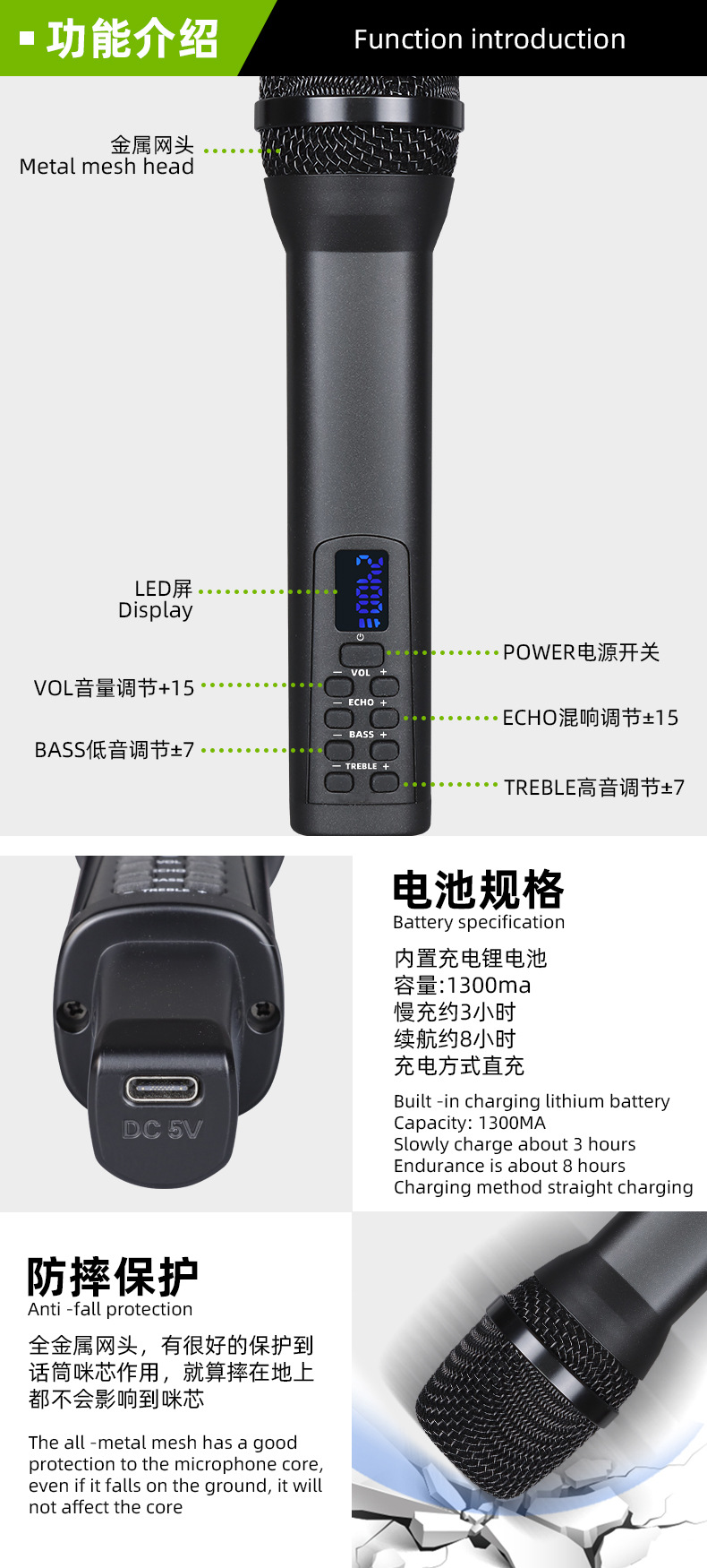 Langsheng 범용 무선 마이크 2.4g 전문 무대 공연 K-송 충전 리버브 하이 및베이스 다이나믹 코일 마이크