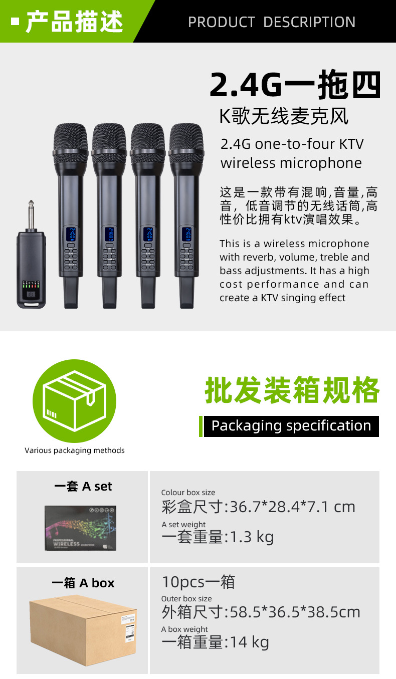 Langsheng 범용 무선 마이크 2.4g 전문 무대 공연 K-송 충전 리버브 하이 및베이스 다이나믹 코일 마이크스토어 가기