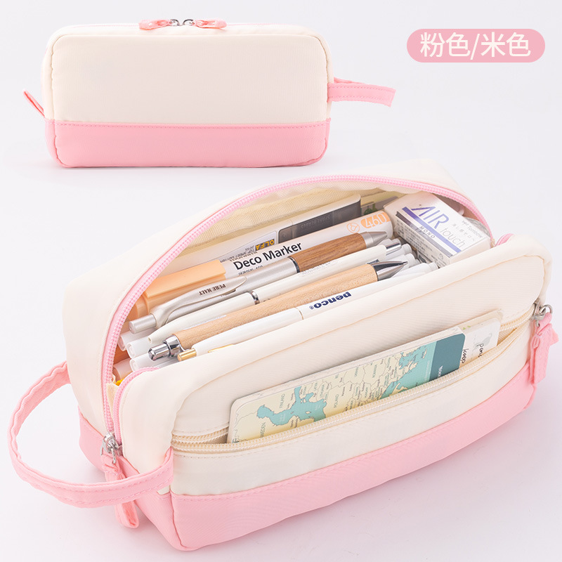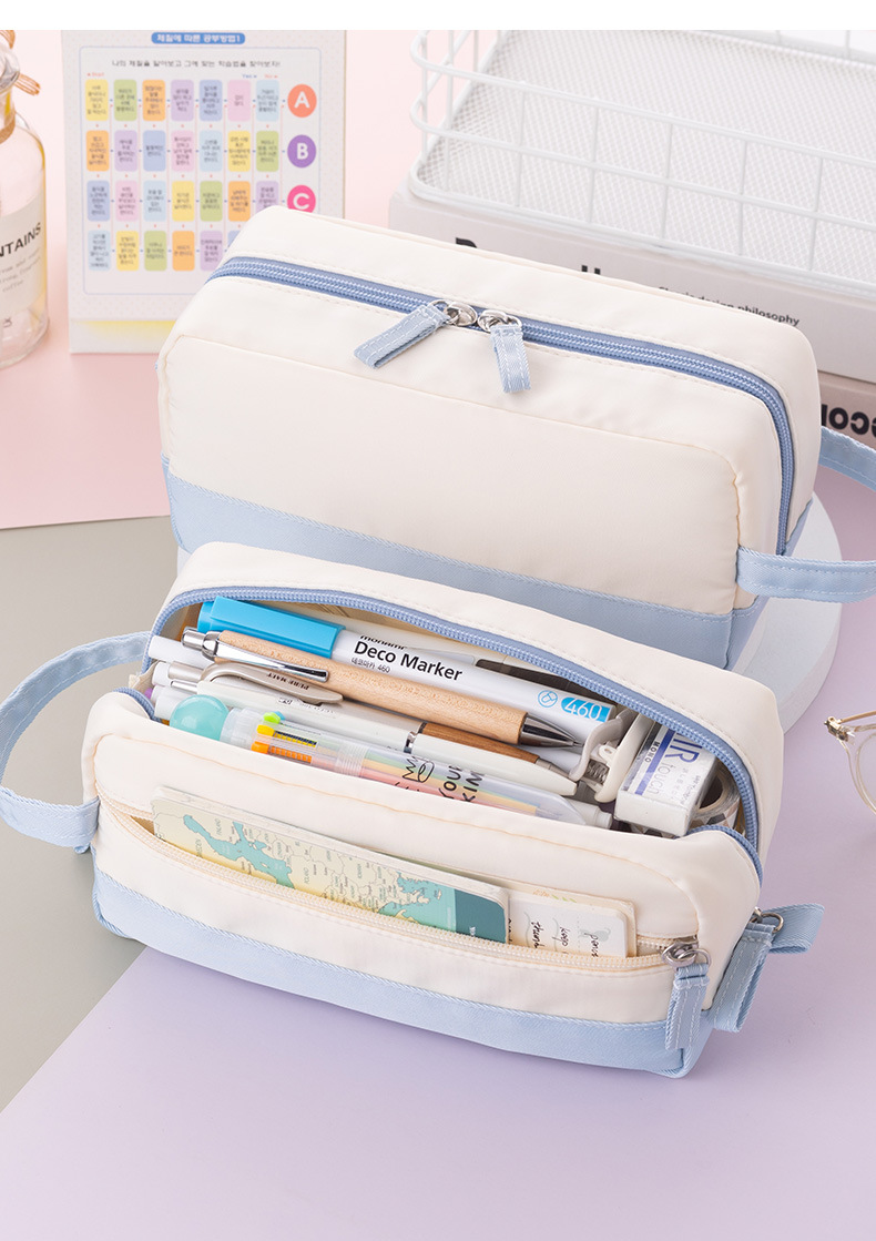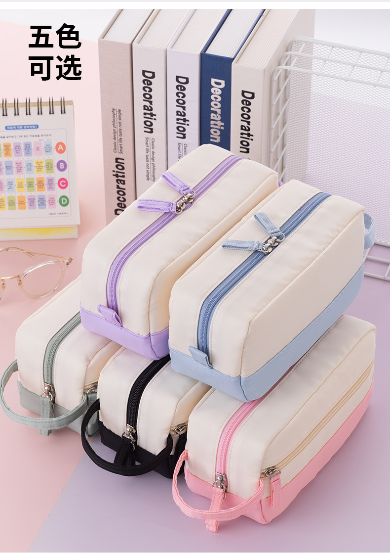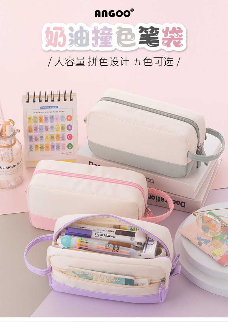 Anke 대용량 더블 레이어 연필 가방 새로운 크림 색상 대비 높은 색상 가치 여아 문구 상자 초등 및 중등 학생을위한 연필 가방스토어 가기