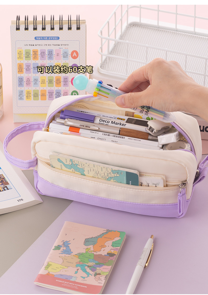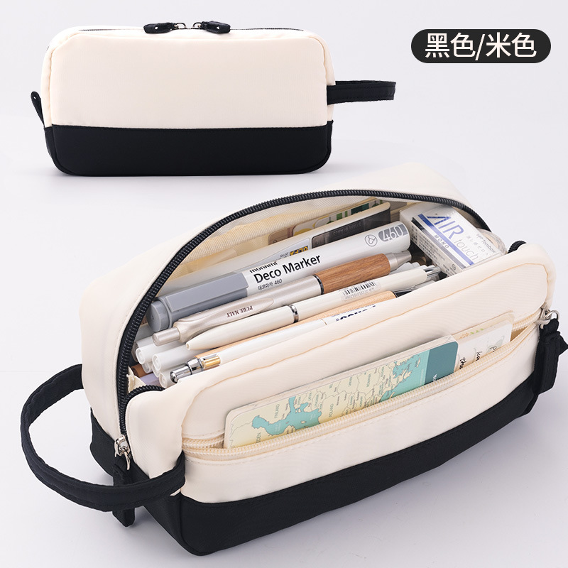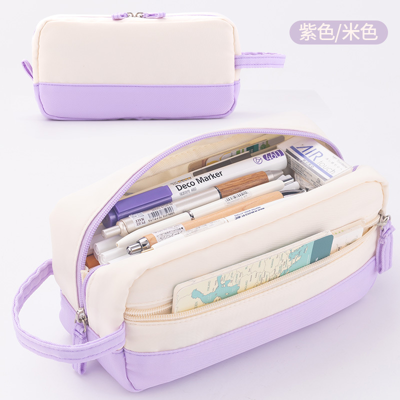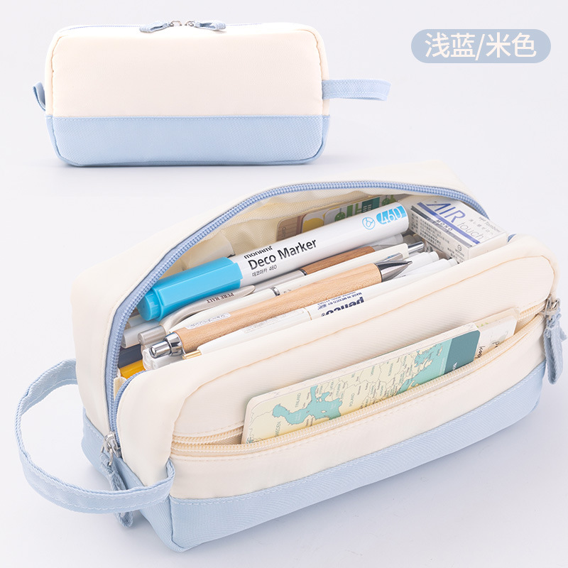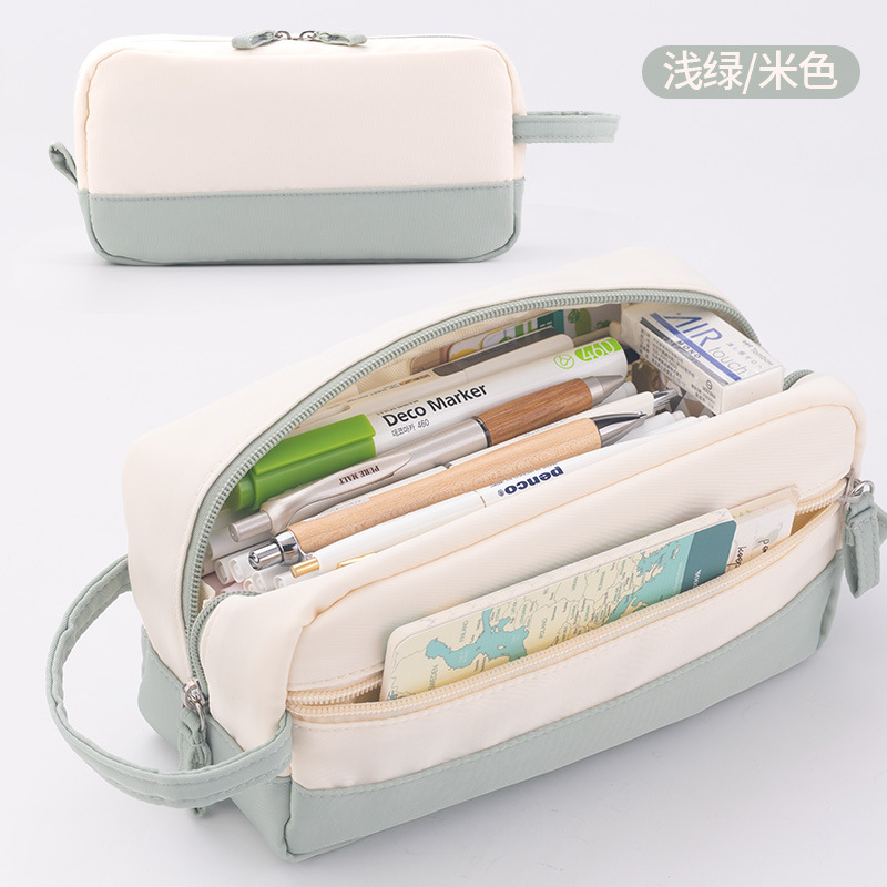 Anke 대용량 더블 레이어 연필 가방 새로운 크림 색상 대비 높은 색상 가치 여아 문구 상자 초등 및 중등 학생을위한 연필 가방스토어 가기