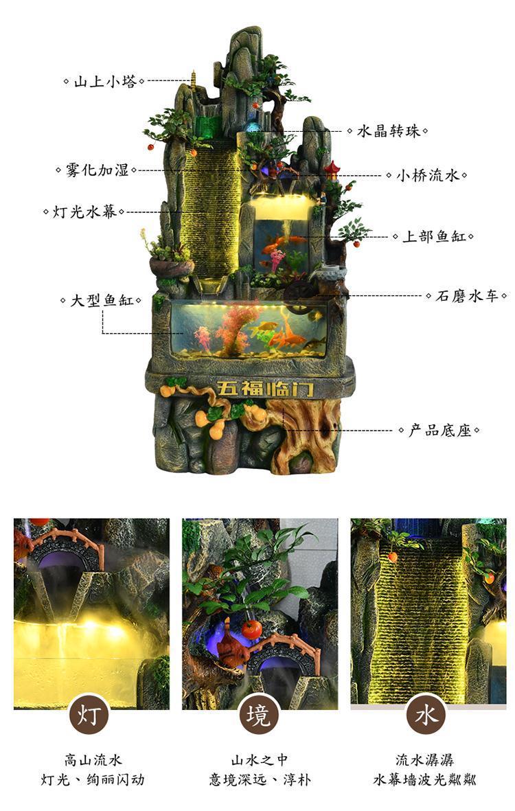 중국식 바위 분수 유수 장식품 거실 발코니 가정 장식 어항 물고기 문화 창조 공예 개업 선물
